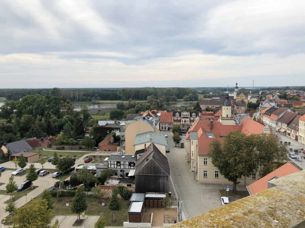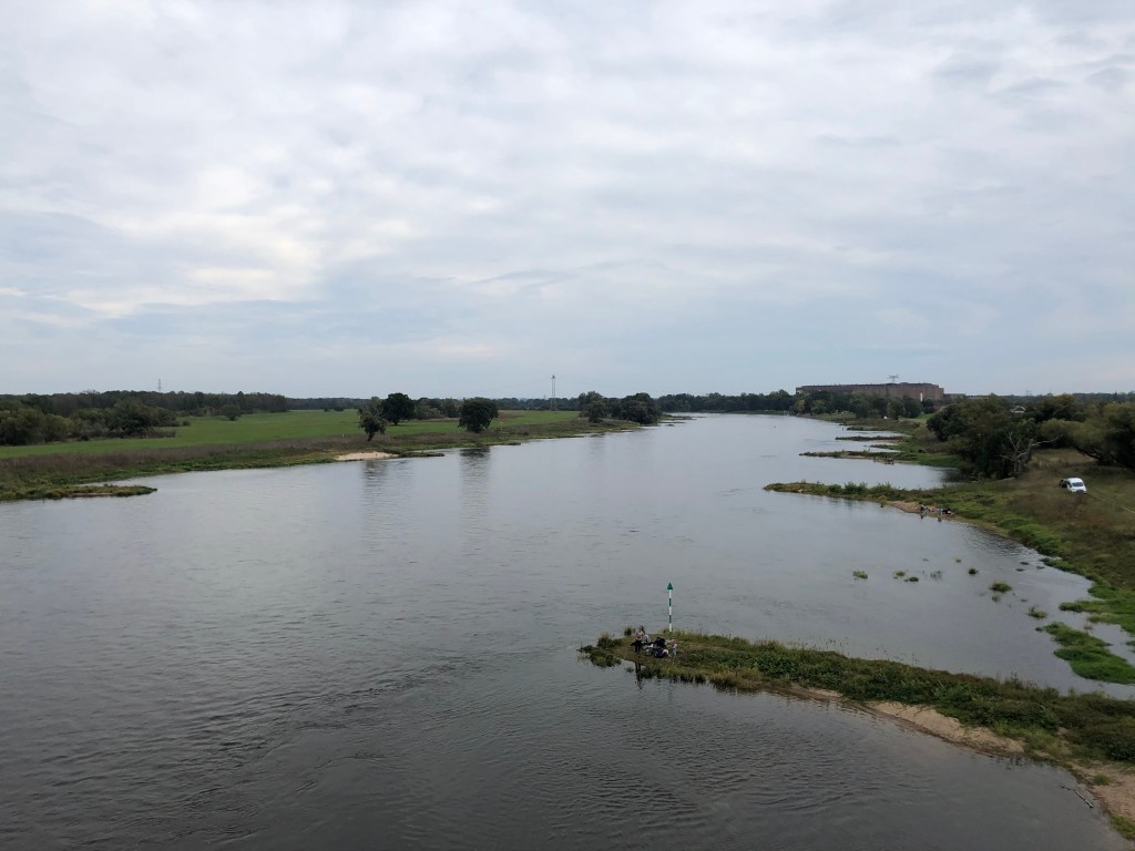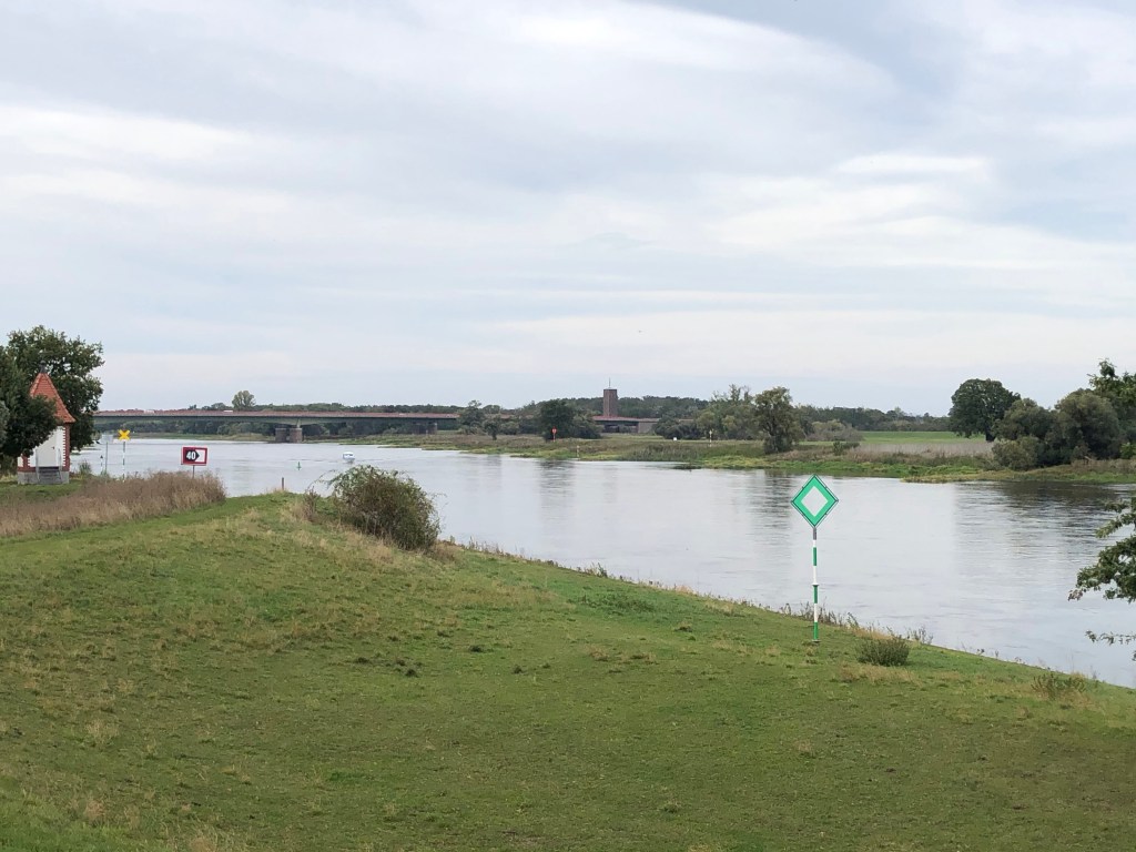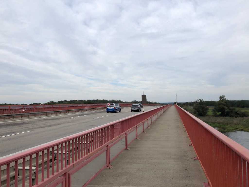 Auf dem Weg dorthin mussten wir wieder über die Elbe. Dazu nutzten wir, kaum zu glauben, die Autobahnbrücke der A9. Seit Jahrzehnten führt uns unser Weg nach Süddeutschland genau über diese Brücke, und nie war uns aufgefallen, dass sich an der Seite ein Radweg befindet.