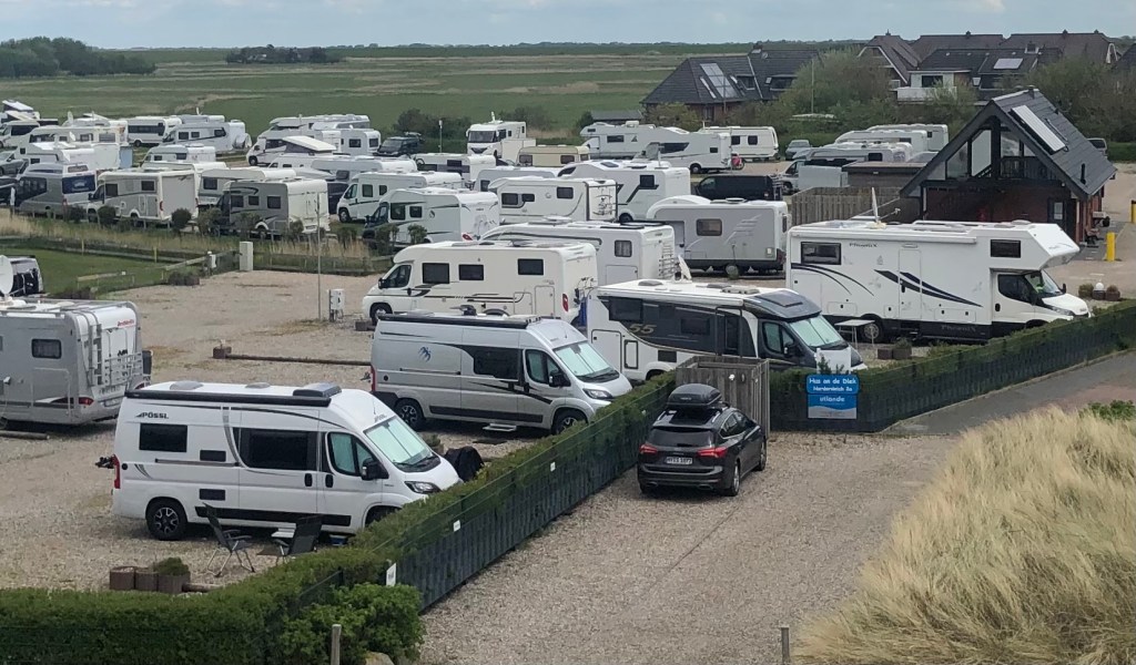 Hier noch einen Blick auf den Campingplatz, der, ausgestattet mit modernen Sanitäranlagen, ziemlich optimal direkt hinter dem Deich liegt.