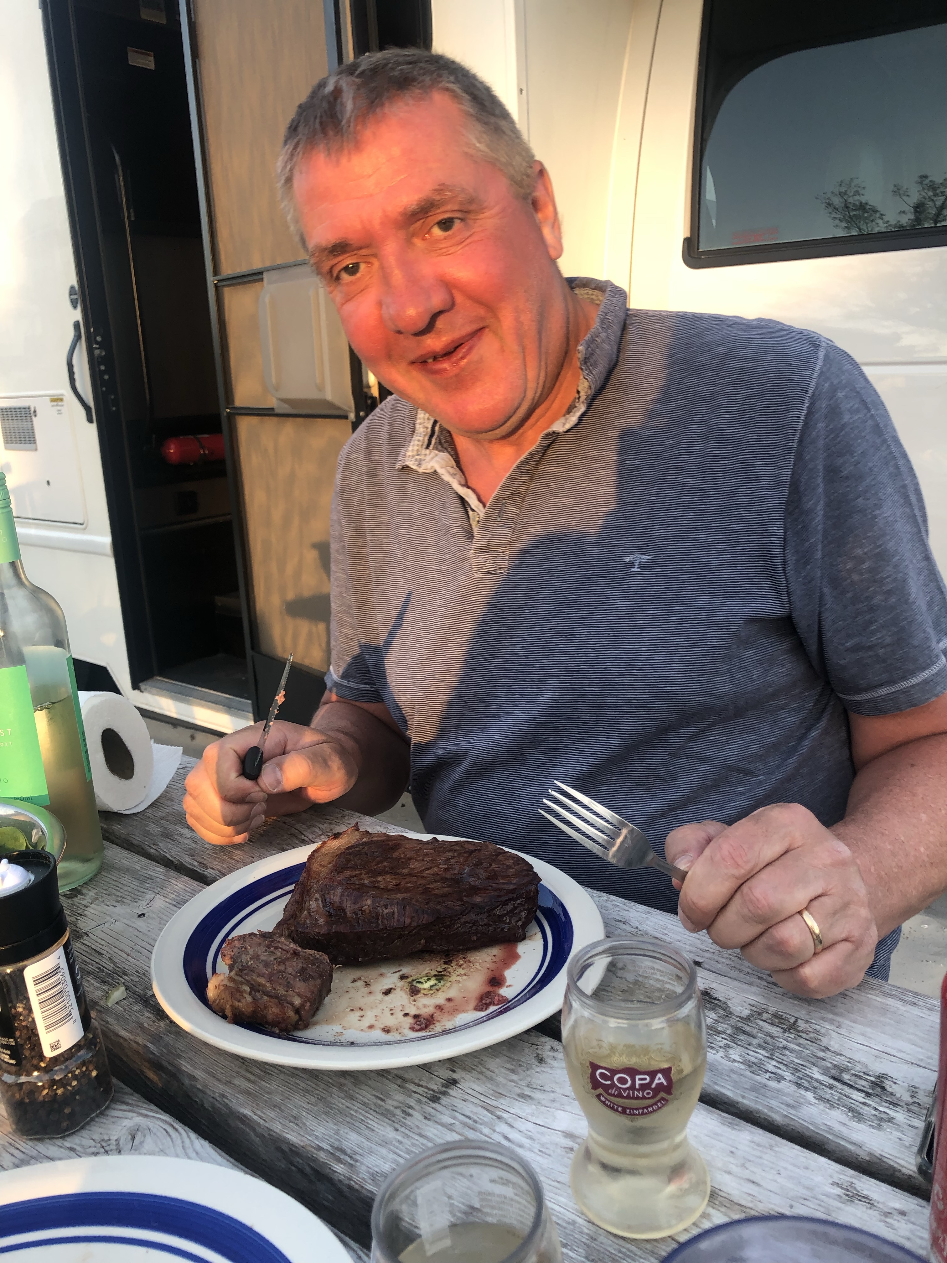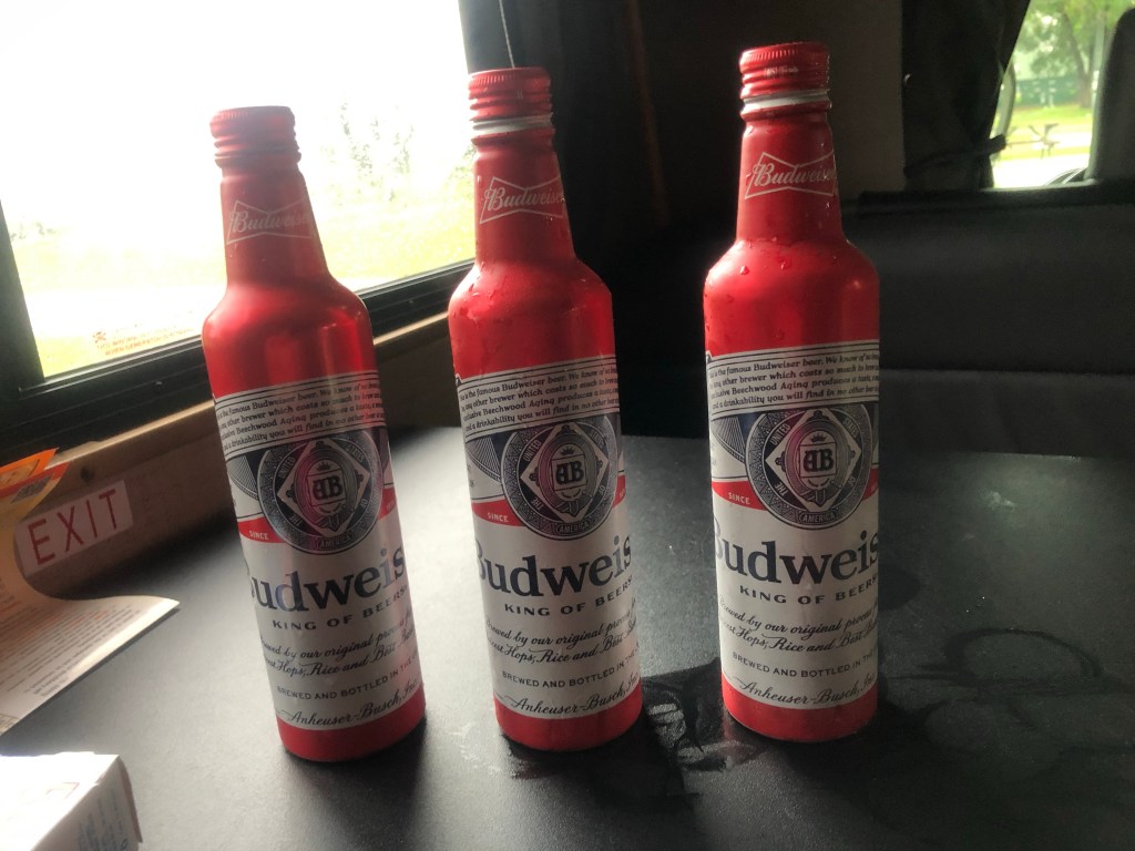 So bepackt steuerten wir den erst besten Campingplatz an, um die Sachen zu verstauen und unsere Koffer auszupacken. Dort ist auch das Foto oben entstanden. Ein zünftiges Bier durfte nicht fehlen.