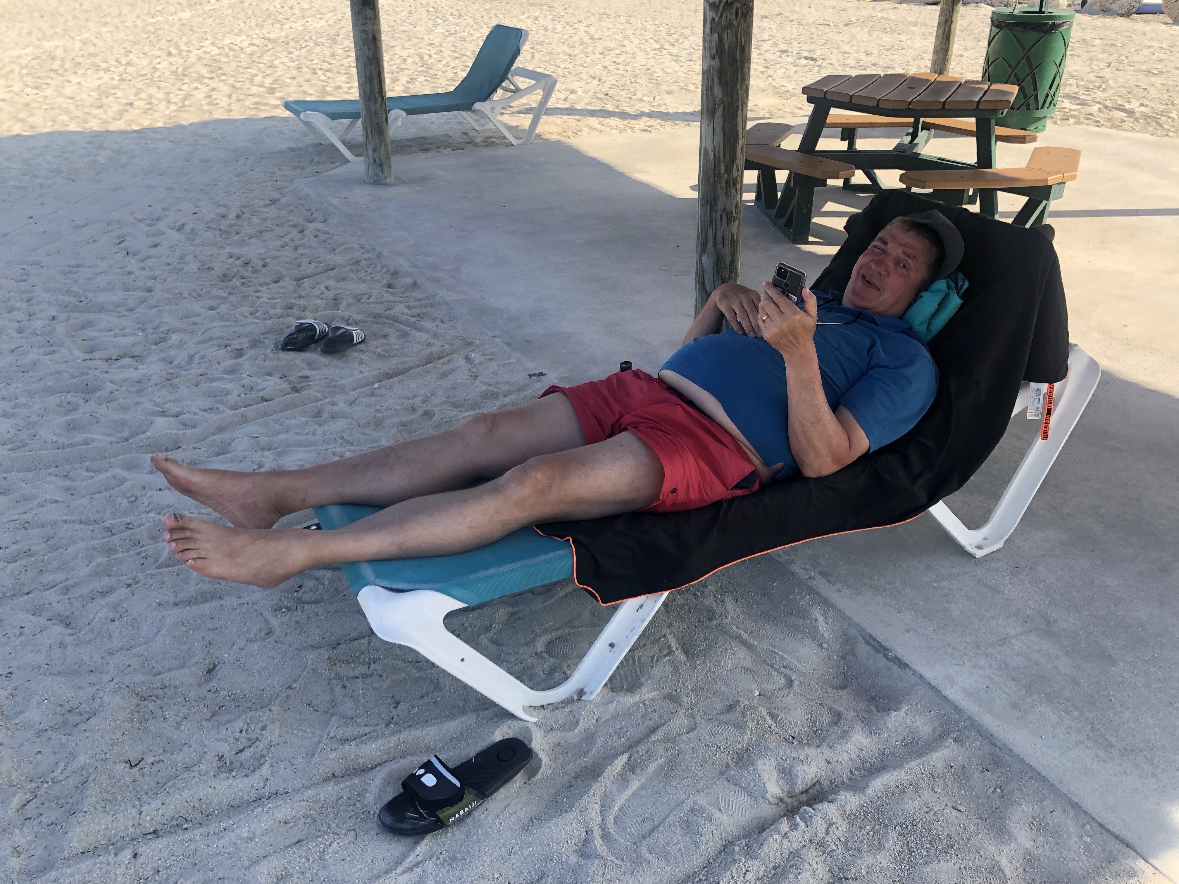 Aber auch hier konnten wir nur wenig im Meer schwimmen, weil es am dafür angelegten Beach wie zuvor zu flach war und weil es an der Stelle, wo es einen Steg ins tiefe Wasser gab, so viel Strömung hatte, dass man höllisch aufpassen musste, nicht abgetrieben zu werden.