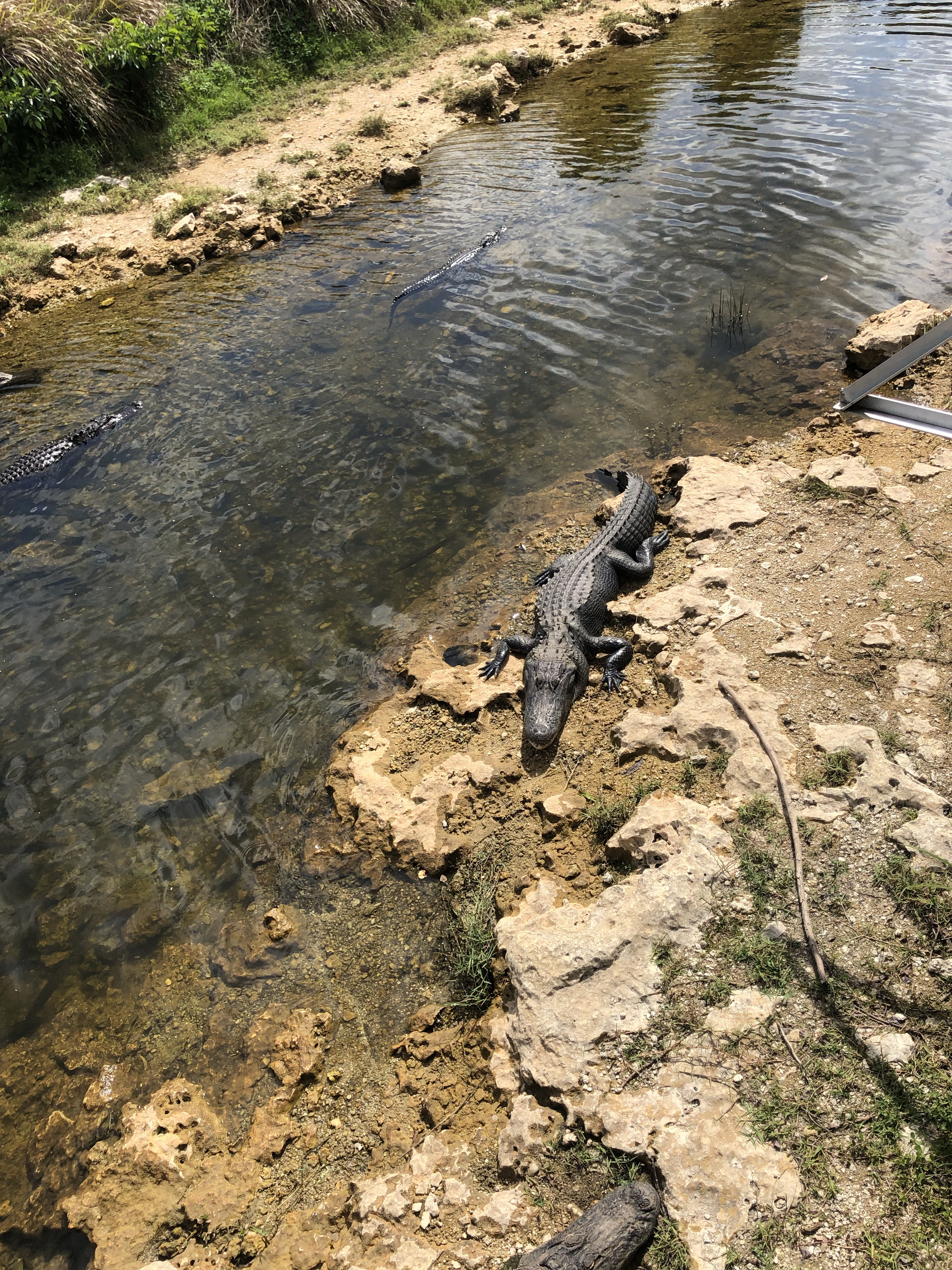 Und natürlich gibt es viele Alligatoren, die sich faul in der Sonne räkeln oder halb im Wasser liegen. Sie sind es auch, die für die Gestaltung der Landschaft mit verantwortlich sind, zum einen weil sich durch ihr Fortbewegen sog. Trails bilden, die dann voll Wasser laufen, zum anderen, weil sich dort, wo sie sich suhlen, der Untergrund verhärtet, so dass sich kleine Hügel bilden können.