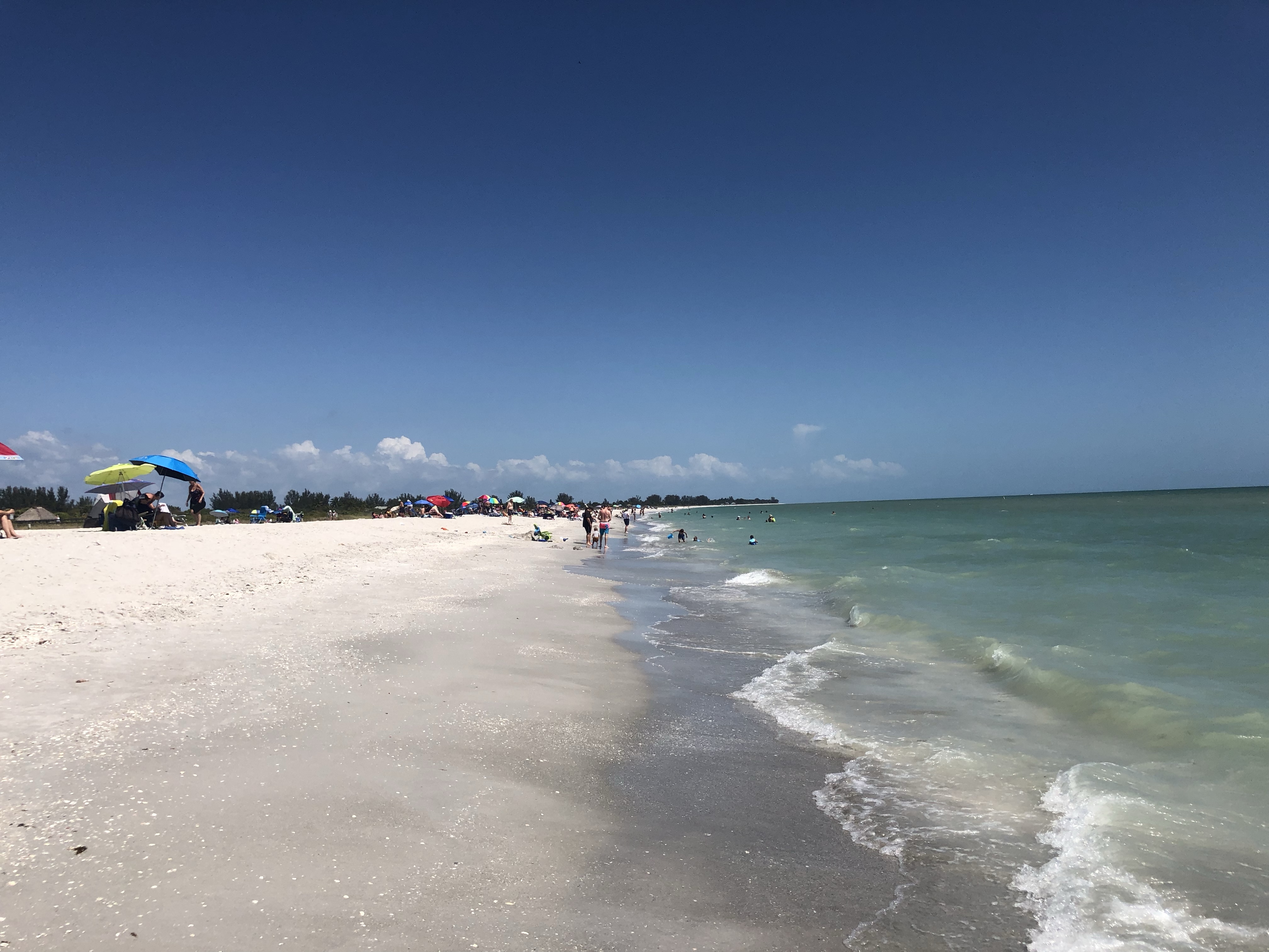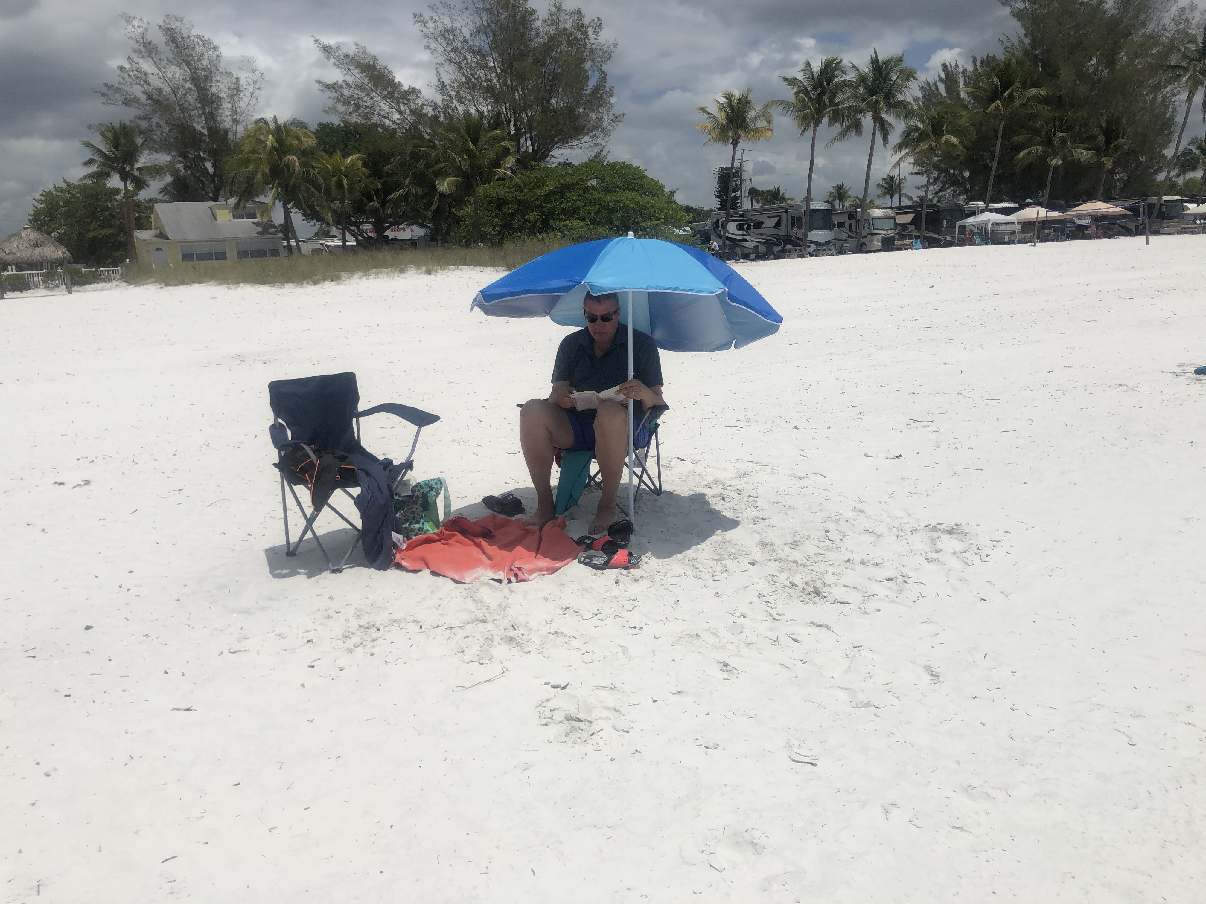 Der Campingplatz war super, die größte Enttäuschung war jedoch, dass man, obwohl er direkt am Meer lag, nicht schwimmen konnte. Zum einen gab es zu viel Bootsverkehr, zum anderen hat es Quallen in die Bucht getrieben, insgesamt nicht schön. Wir versuchten es noch an einem öffentlichen Strand, den man uns empfohlen hatte, und trafen auf ein weiteres Hindernis für ungetrübte Strand- und Badefreuden: die niedrige Wassertiefe. Rund um die Keys ist das Wasser maximal Knietief; na ja Leiden auf hohem Niveau.