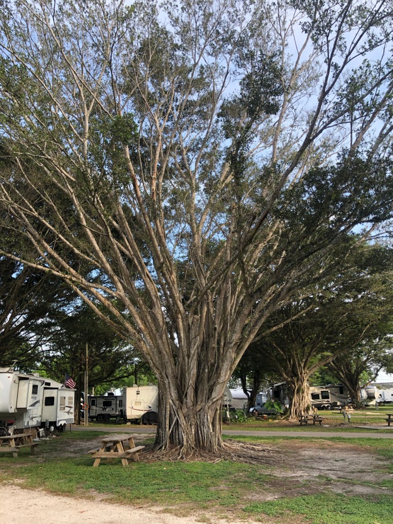 Sanibel Island besteht zu fast 40 Prozent aus Naturschutzgebieten. Die Insel ist grün, mit einer subtropischen Vegetation! Das war auch der Campingplatz, zum ersten Mal auf dieser Reise hatten wir einen echten Schattenplatz! Der Preis dafür waren ohne Ende Mücken, die es vor allem auf mich abgesehen hatten.