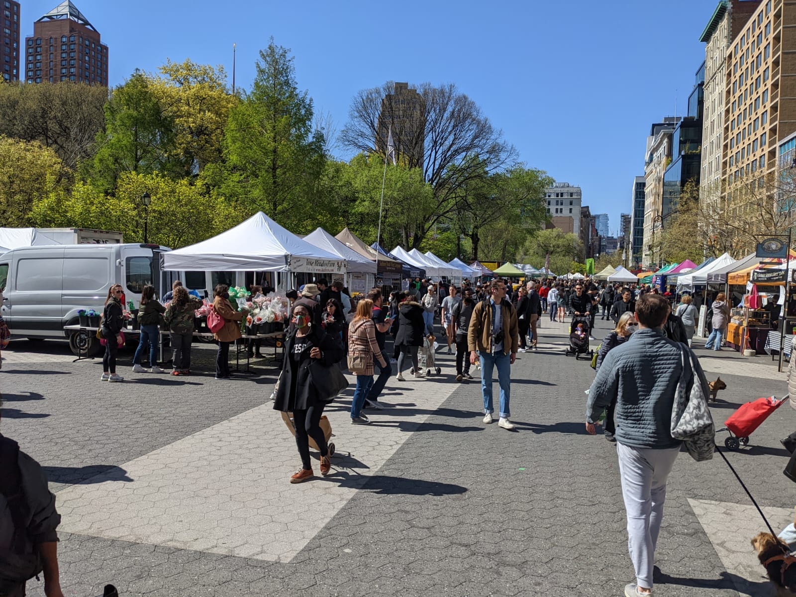 Wieder ein Tag mit strahlendem Sonnenschein ☀️, den wir ausnutzten Zuerst ging es mit der U-Bahn wieder Downtown. Da Wochenends nicht alle U-Bahnen fuhren, liefen wir ein Stück weiter und kamen unverhofft zum Union Square. Und weil Samstag war, fand dort ein schöner Wochenmarkt, lt. Reiseführer der schönste der Stadt, statt – mit einem Stand mit superleckeren glutenfreien Muffins!