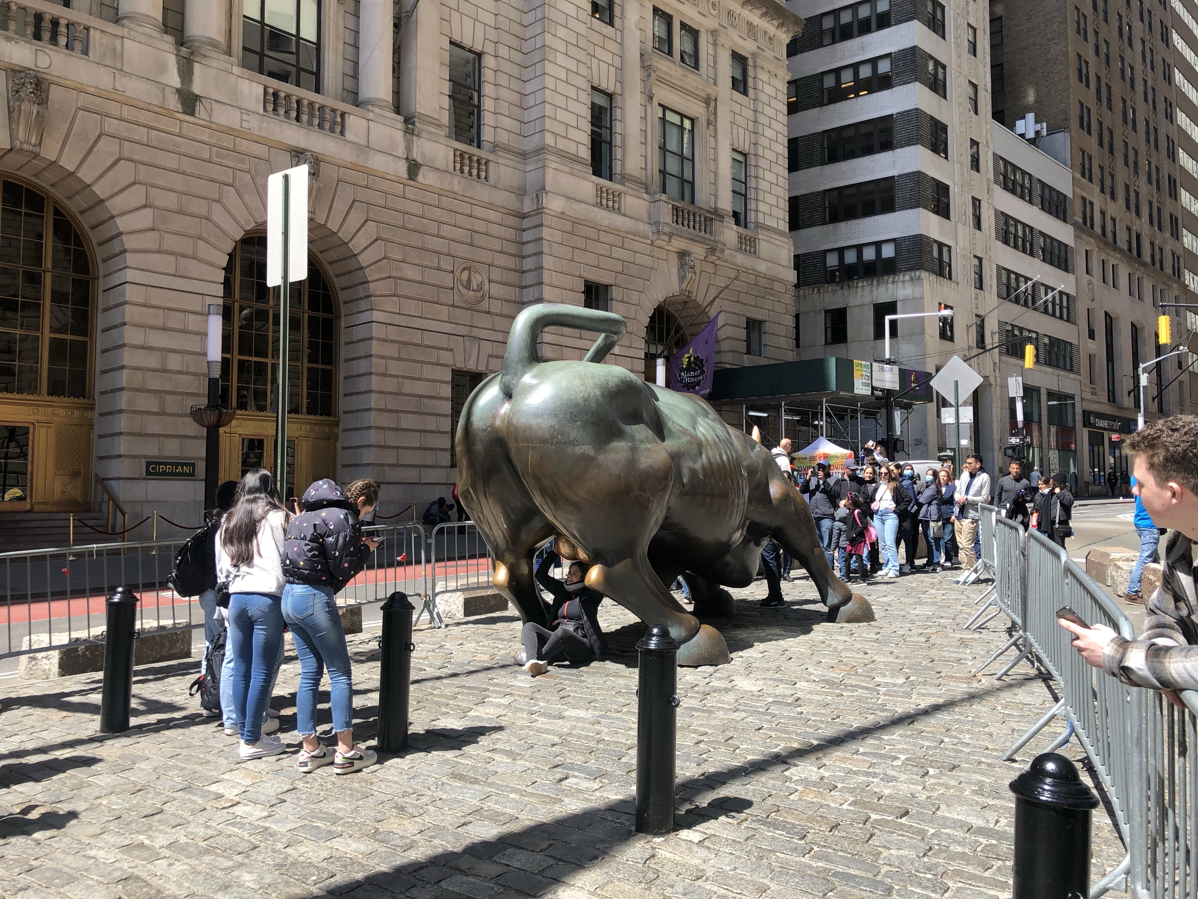 Danach ging es Downtown Manhattan. Wir passierten die Börse, die Stock Exchange sowie die Trinity Church, die zwischen all den Hochhäusern stehen geblieben ist. Schön ist auch, wie die Menschen für Fotos mit dem Bullen stehen bleiben und welche Fotos dabei entstehen.