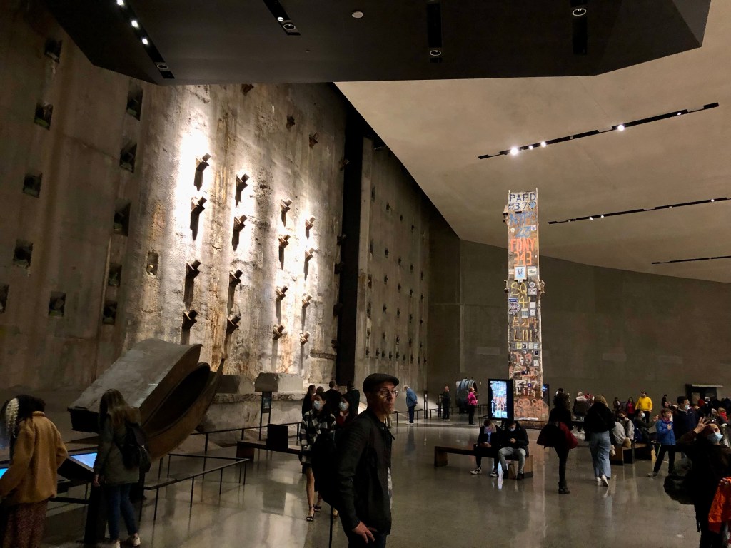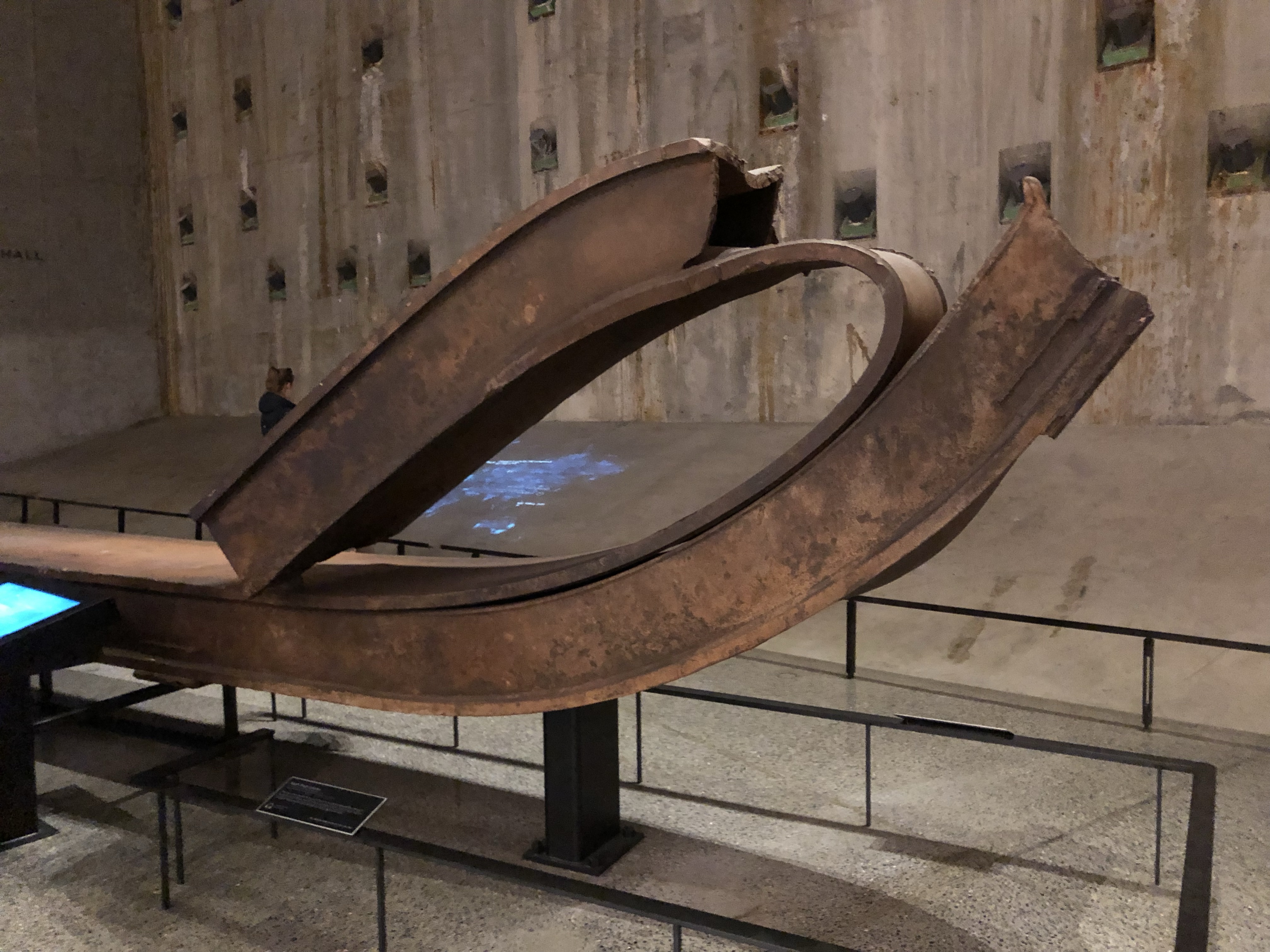 Im Inneren des Museums geht es bis die Gründung der Gebäude hinunter. Man sieht noch Reste der Schutzmauern, die das Eindringen von Wasser des Hudson Rivers verhindern sollen, und den letzten Stahlpfeiler, der aus den Trümmern gerettet wurde.