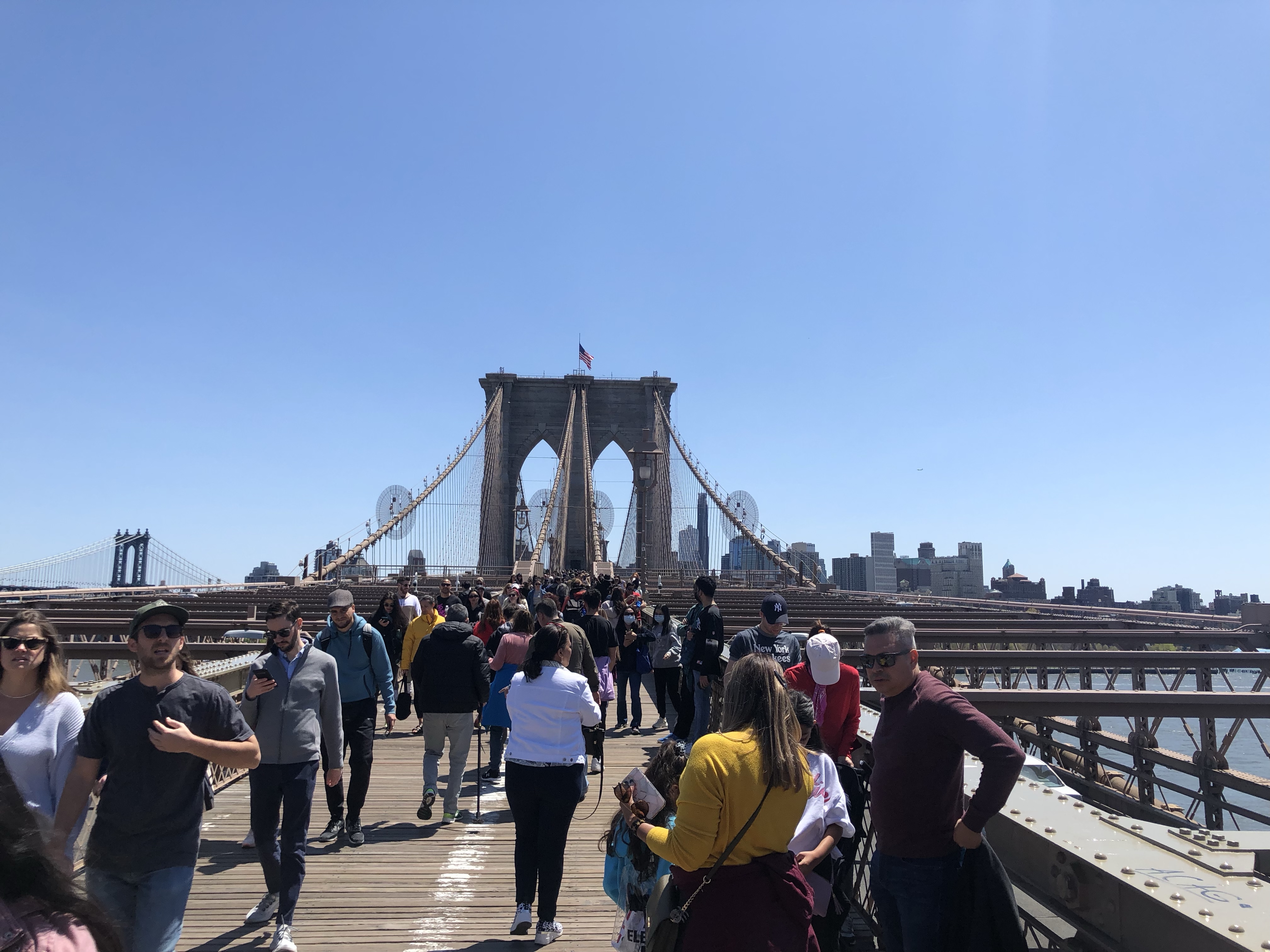 Wieder zurück, ging es uptown, zuerst zur berühmten Brooklyn Bridge. Auch weil es Samstag war, waren wir dort nicht die einzigen!