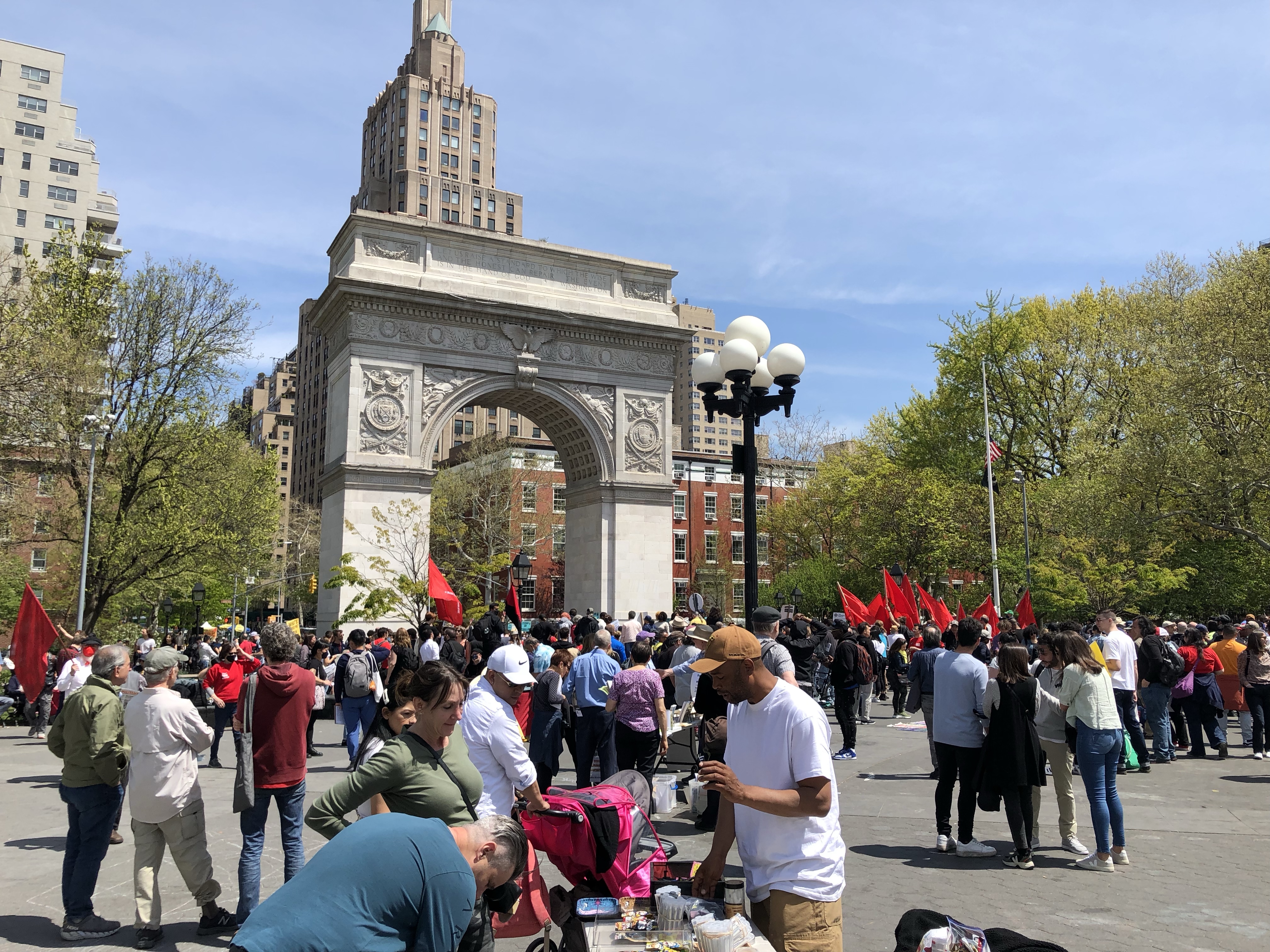 Dann fuhren wir zum Washington Square, einem belebten Park Downtown Manhattan. Dort gab es tatsächlich auch eine Mai-Demonstration, aber nicht vergleichbar mit Deutschland oder gar Berlin.