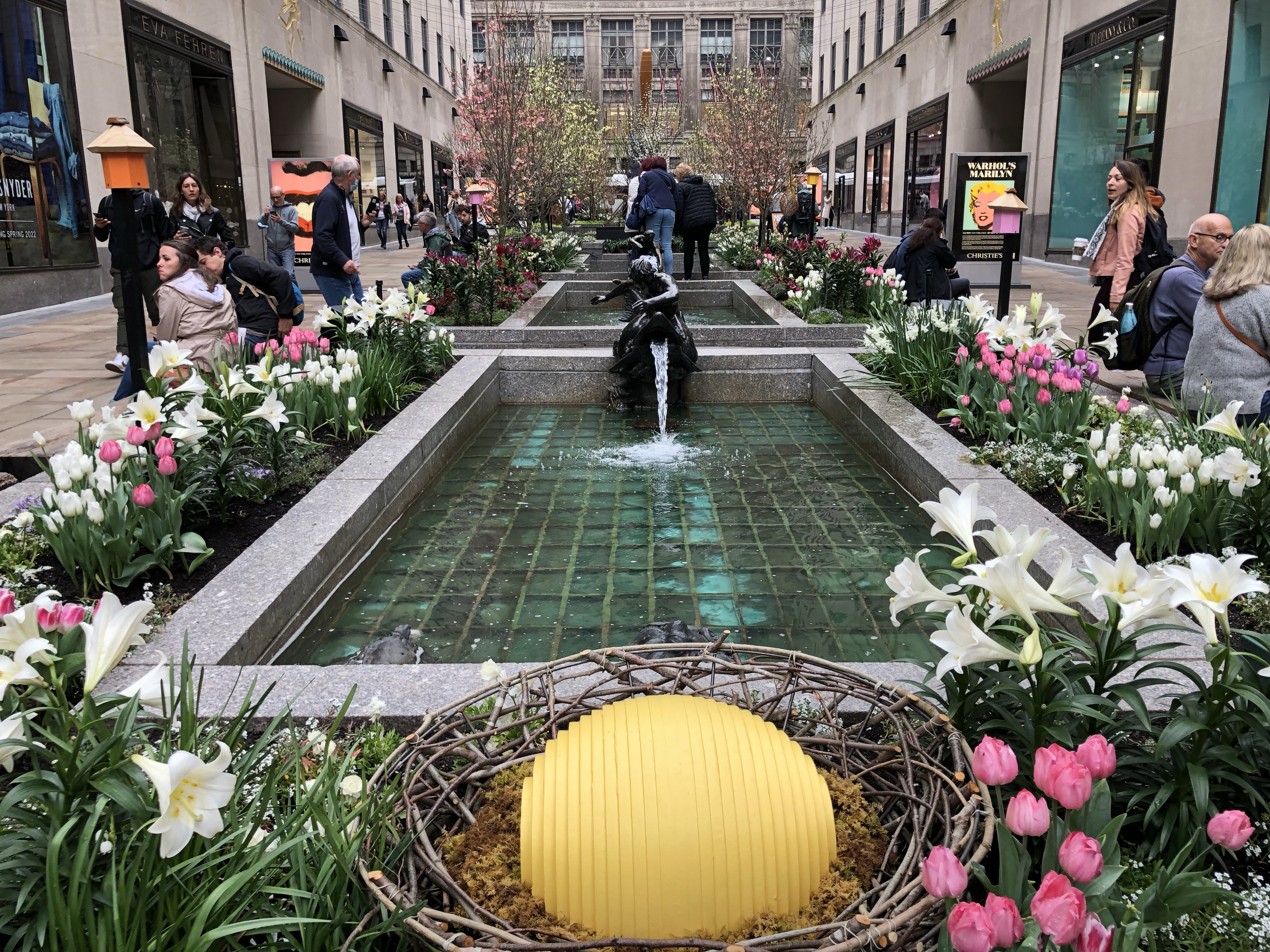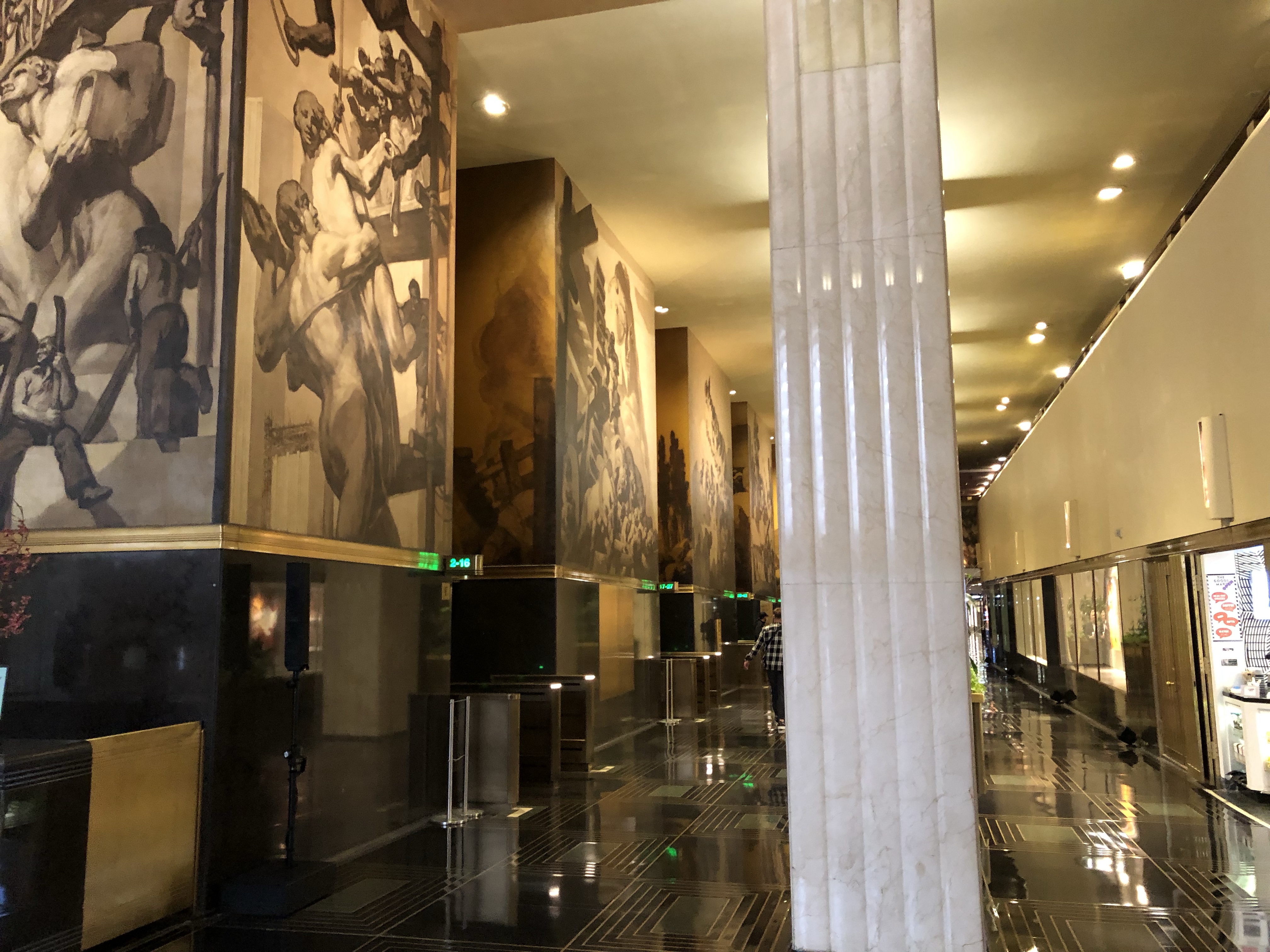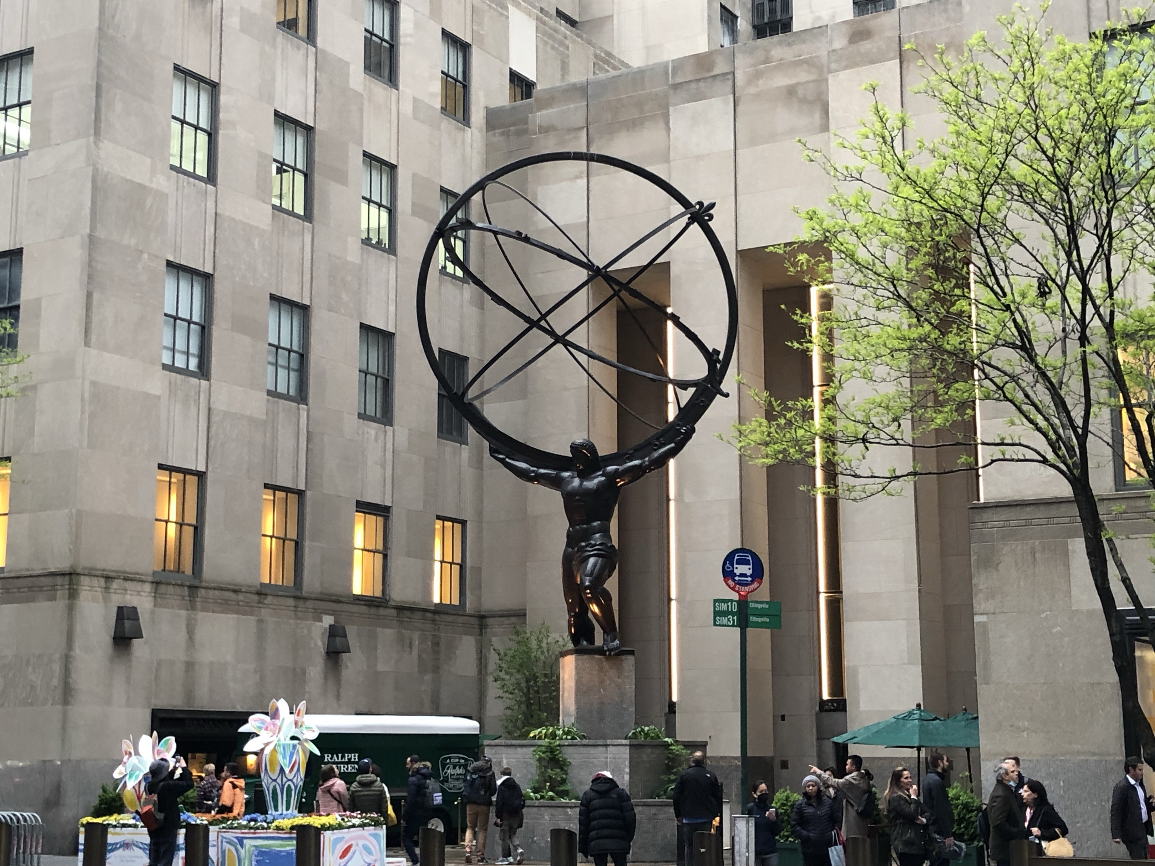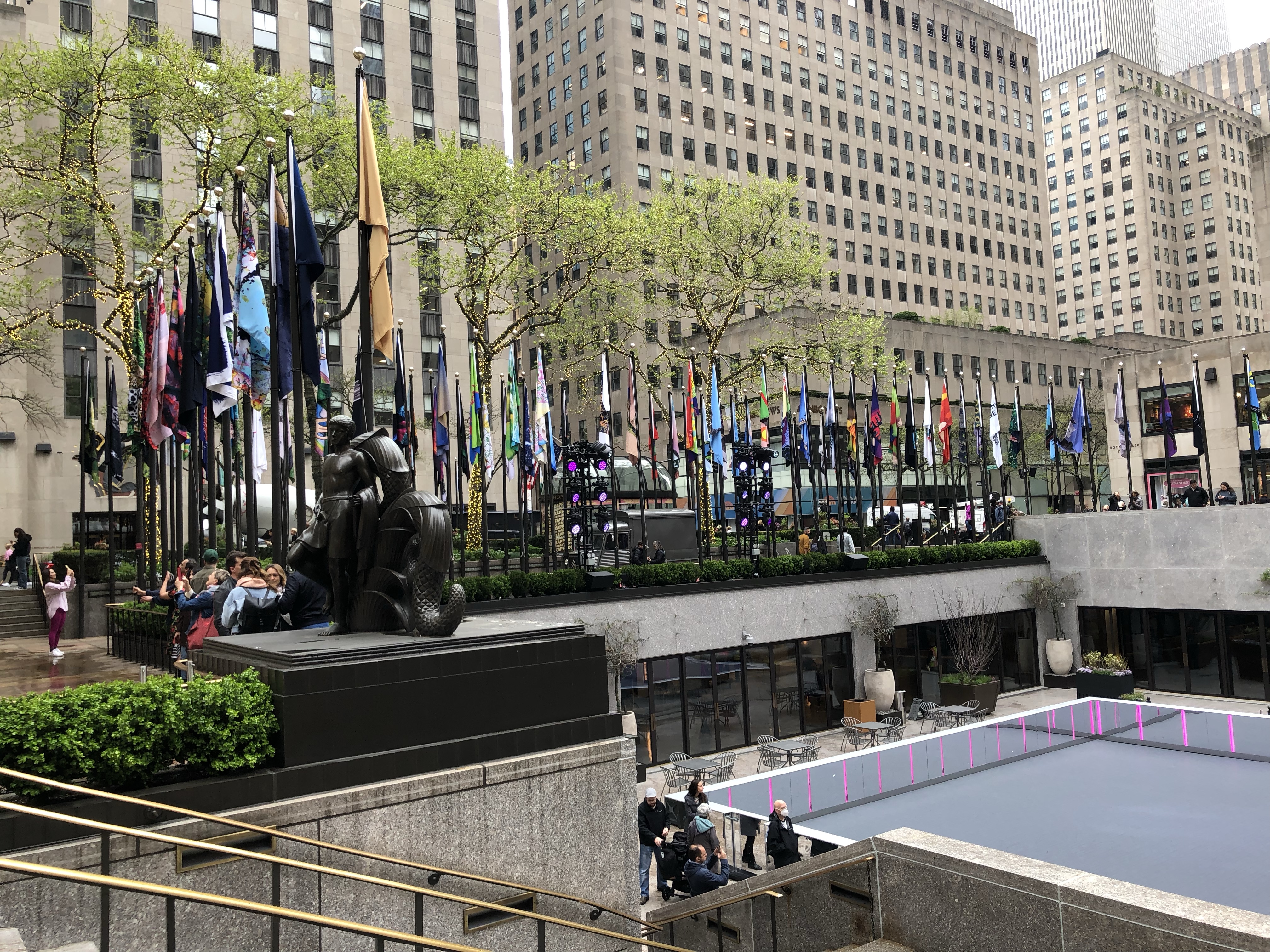 Auf dem Weg dorthin machten wir am Rockefeller Center Station. Das Rockefeller Center ist ein riesiger Gebäudekomplex, der u.a. auch den amerikanischen Fernsehsender NBC beherbergt. Und wie immer: alles riesig, mit Marmor ausgestattet…. Wo jetzt Inline geskatet wurde, wird im Winter Schlittschuh gefahren, dort steht auch der 20 m hohe Weihnachtsbaum.