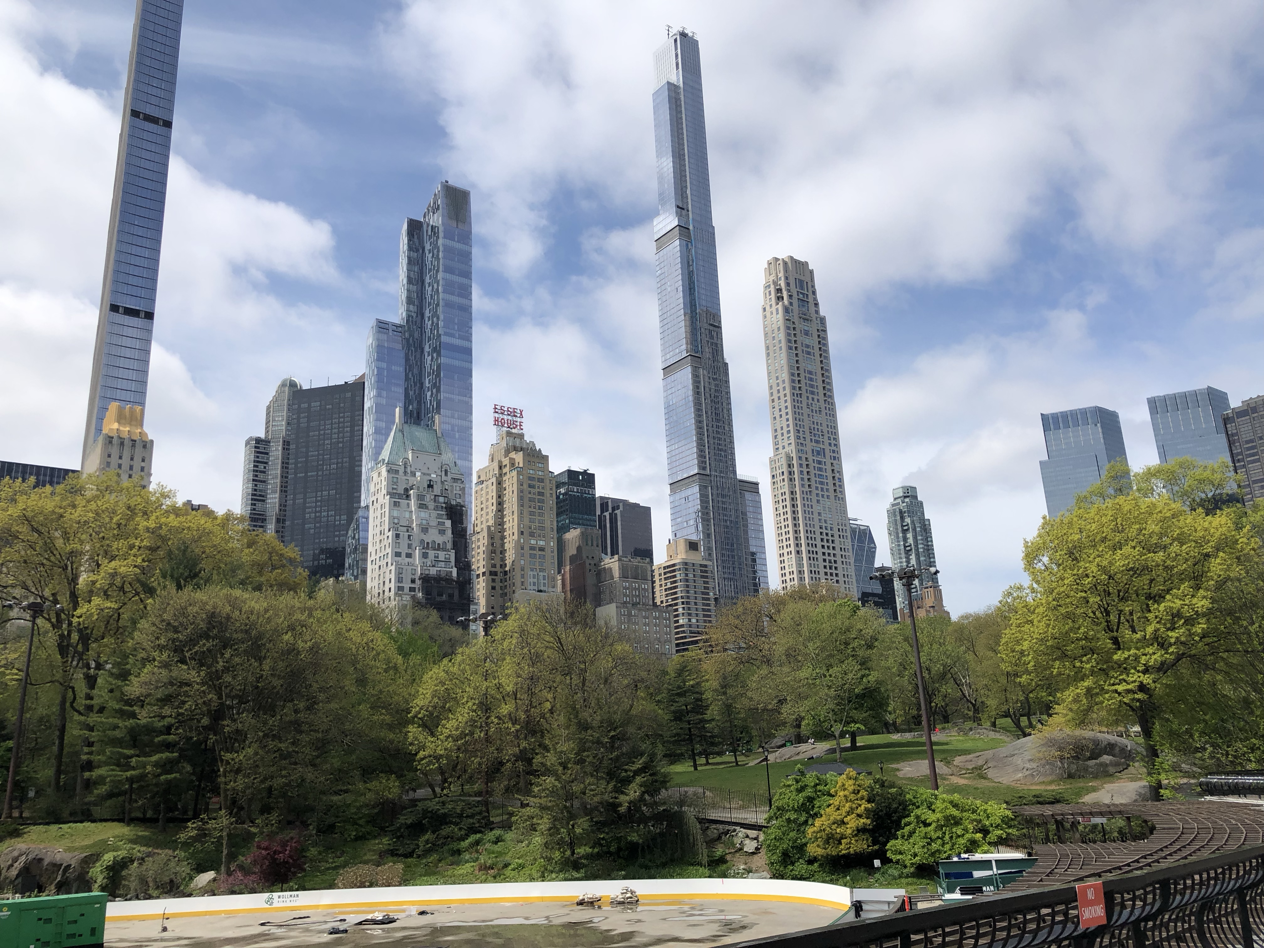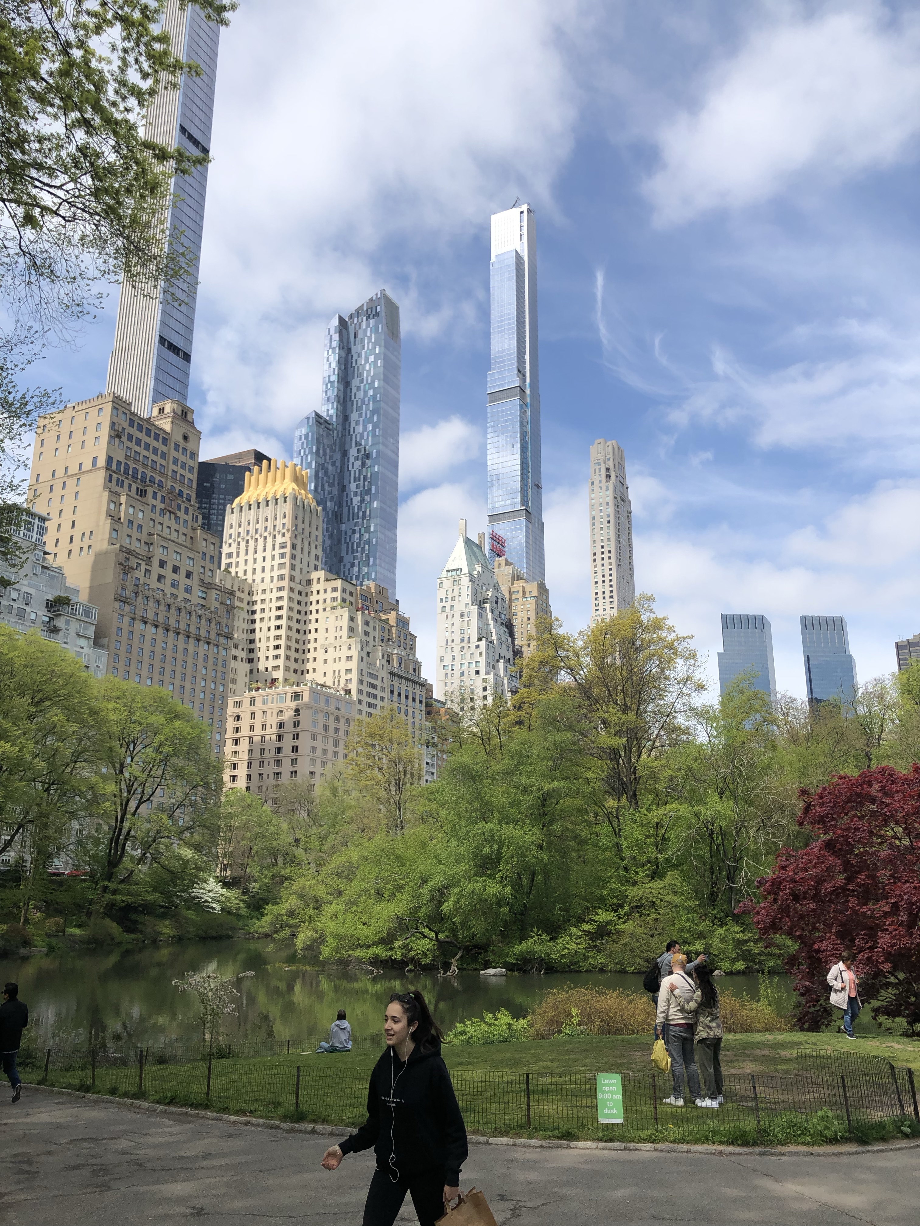 Bei Sonnenschein stand der Central Park, der größte Park New Yorks auf dem Programm. Immerhin ist er 4 km lang und 800 m breit, mit einer Fläche von 340 ha. Daher mieteten wir uns Fahrräder, um einmal außen rum zu fahren. Dabei stellte sich der Park als ziemlich hügelig heraus. Der Kontrast zwischen den Wolkenkratzern und dem sich direkt anschließenden Park ist enorm.