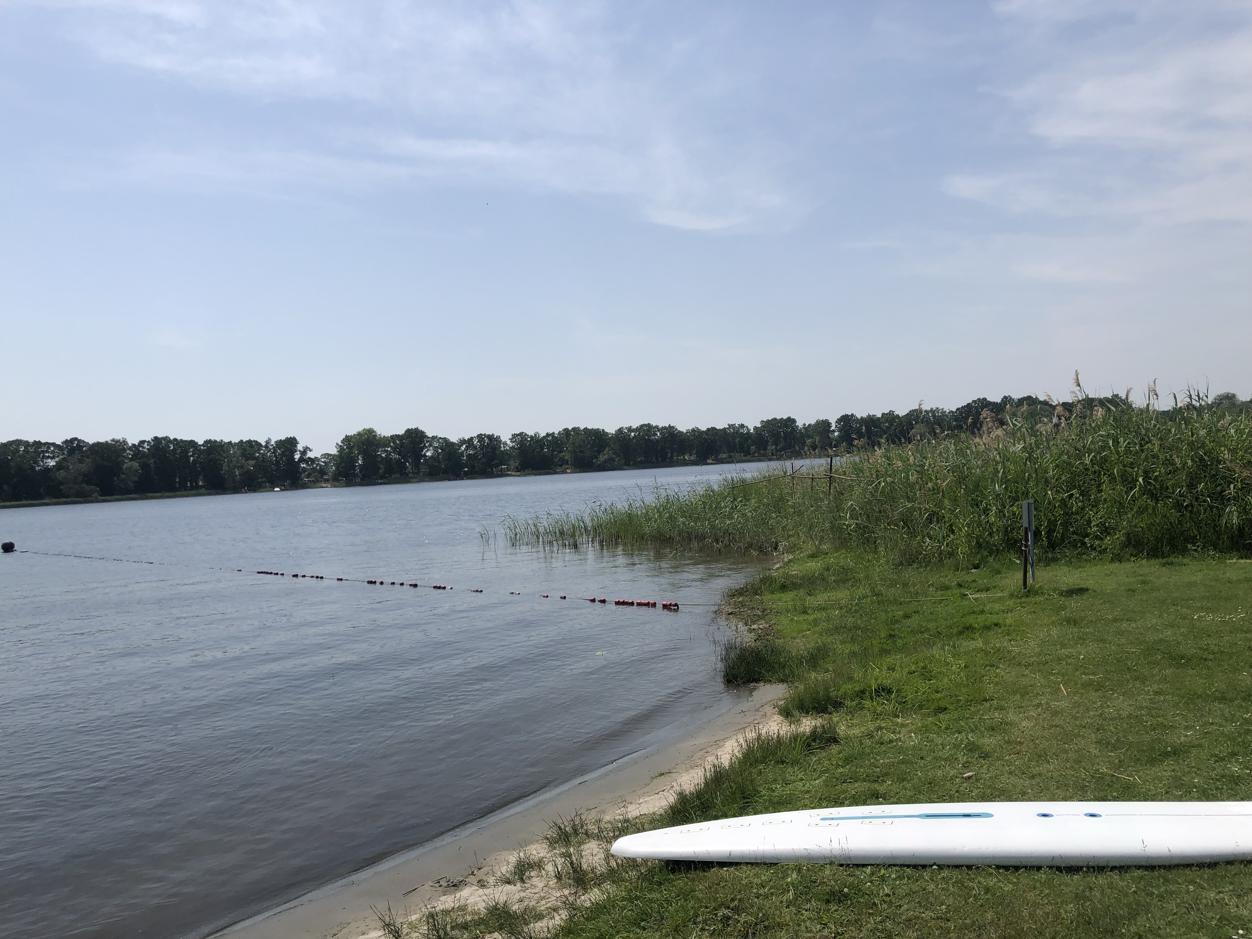 Eigentlich ganz schön, direkt am See gelegen, aber so voller Mücken, dass wir in der Dämmerung ins Wohnmobil gehen mussten. Wind, Strömung und Bootsverkehr verhinderten darüber hinaus ausgiebiges SUPen…