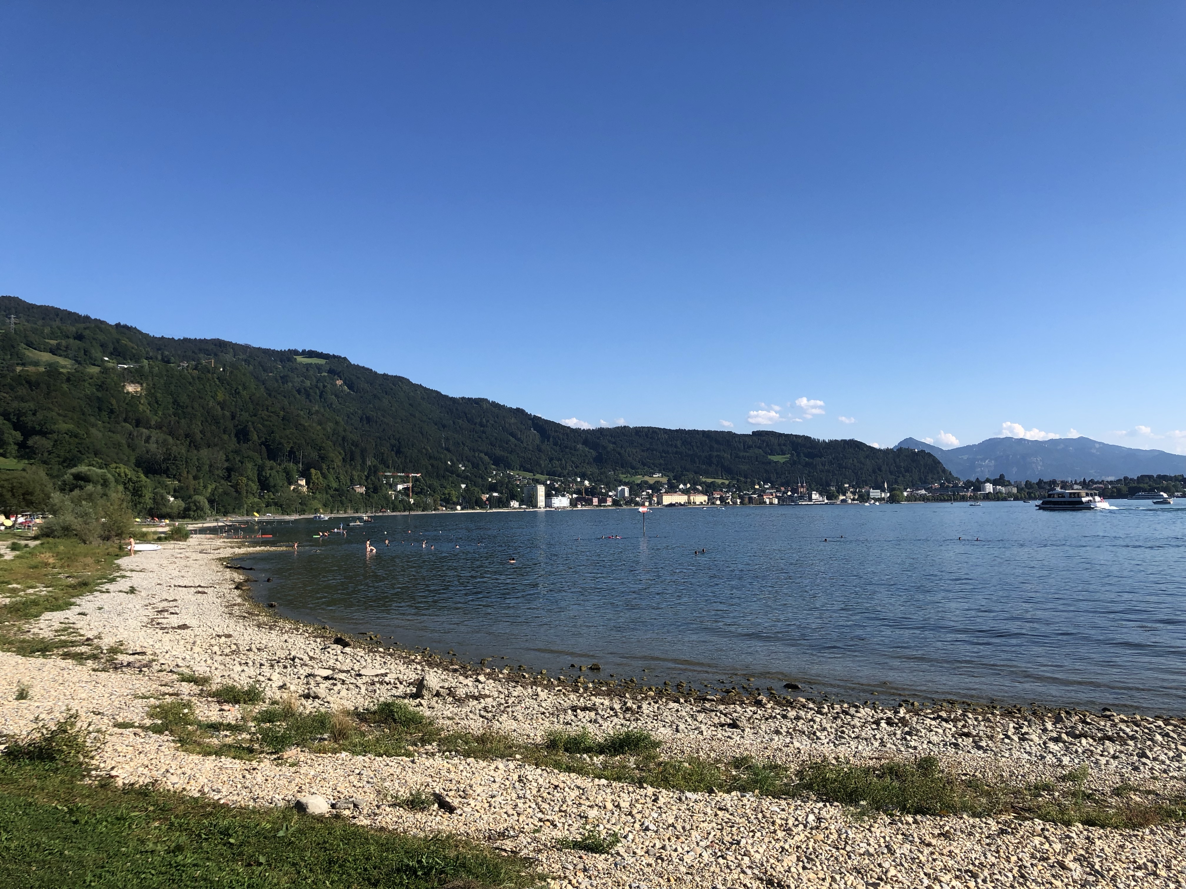 Am Samstag sind wir dann fast Stau frei, trotz Ferienbeginns in Bayern, hier in Bregenz angekommen. Und was soll ich sagen, wir hatten eine tolle Zeit, mit einem klasse Campingplatz, Campingplatz Weiss, den wir ja schon von 2019 kannten, und einem superschönen Bodensee direkt vor der Tür.