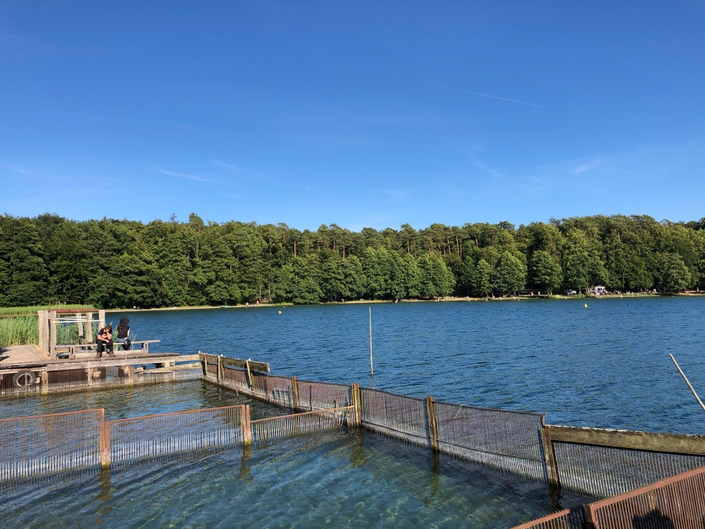 Leider mussten wir am Sonntag unseren Platz schon um 14 Uhr räumen. Wir nutzten die Gelegenheit für einen Abstecher an den Stechlinsee, der ja schon immer unser liebster See ist. Aber leider gibt es dort immer noch keine Campinginfrastruktur! Dennoch es hat uns wieder gut gefallen, das Wasser ist einfach so klar und sauber und der See immer einen Besuch wert.