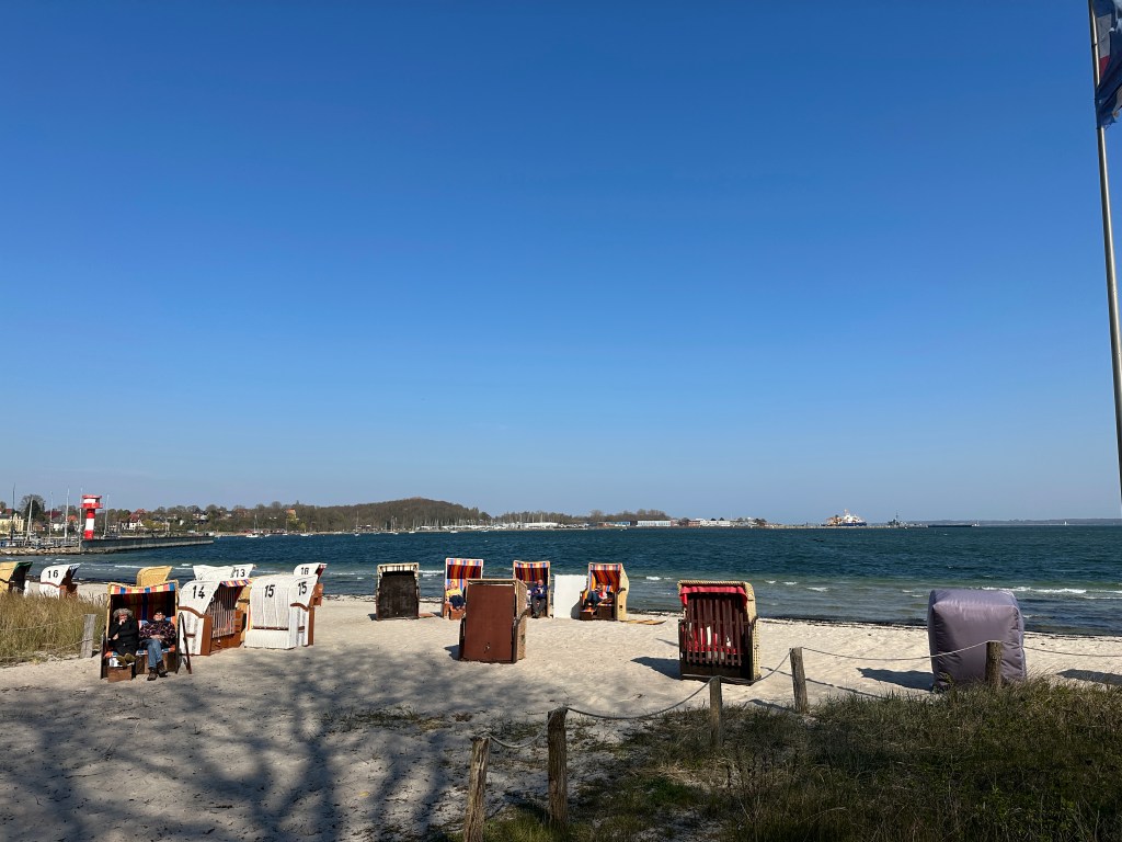 Wir steuerten daher den Wohnmobilstellplatz am Noor in Eckernförde an. Dort hat es uns richtig gut gefallen. Selten haben wir so einen guten und sauberen Stellplatz gesehen, mit modernen und immer sauberen Sanitäreinrichtungen, und vor allem komplett digitalisiert. Hinzu kommt, dass er sehr nah zum Zentrum liegt und auch die Strände sind alle fußläufig gut erreichbar. Denn noch können wir mit Andra nicht Fahrrad fahren, mussten also viel zu Fuß gehen.