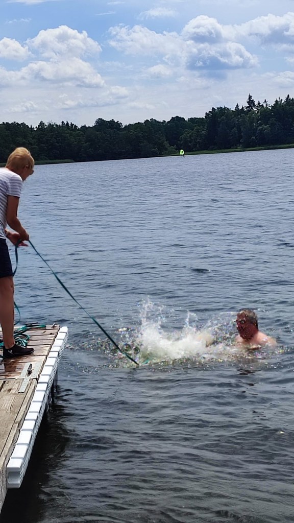 Wir trotzten dem Wetter und genossen den schönen See, wobei vor allem Andra ihren Spaß hatte. Sie hat gelernt, wie wie man vom Steg aus ins Wasser springt.