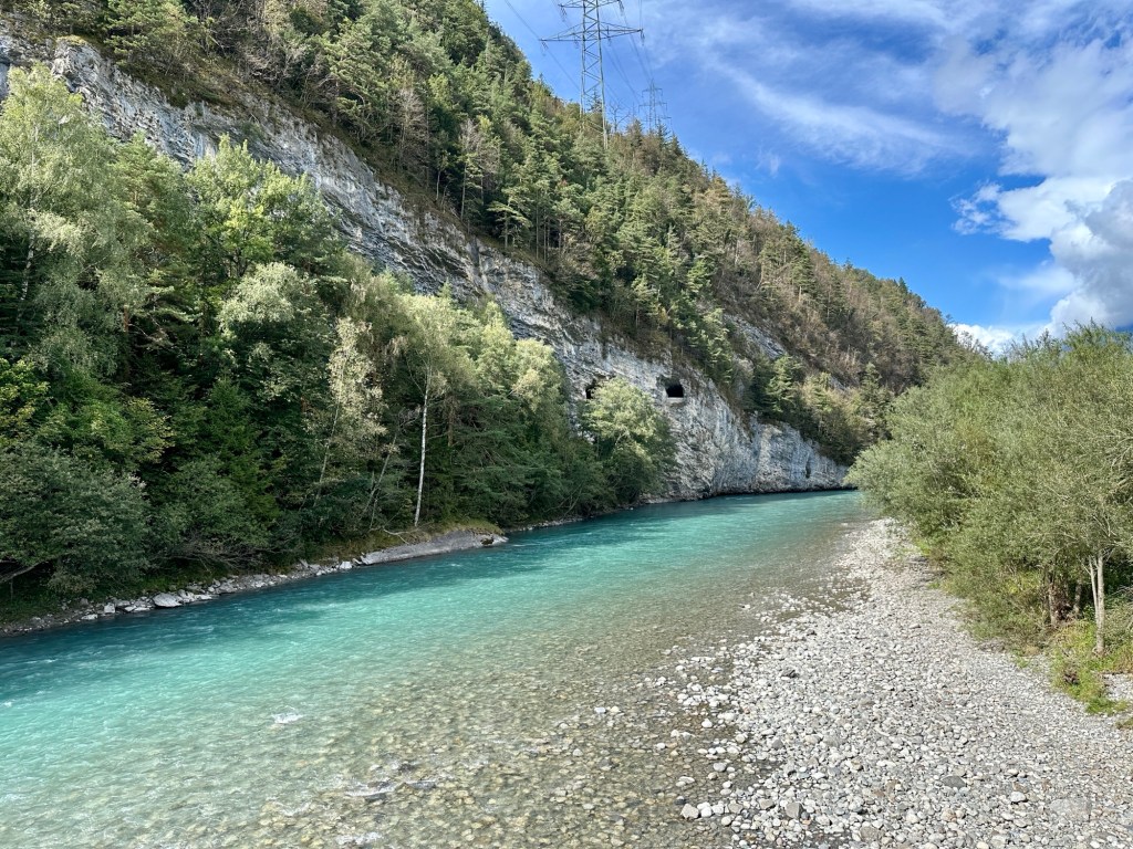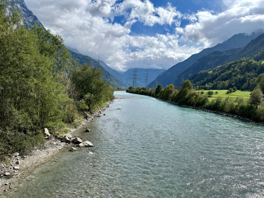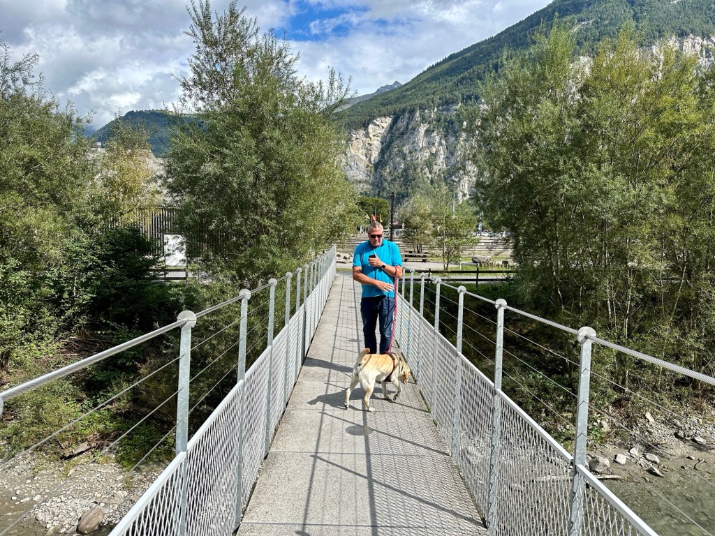 Man konnte die Raststätte zu Fuß verlassen und ein wenig spazieren gehen. Eine Hängebrücke führte über einen Fluss namens Reuss und schwankte ganz schön. Andra freute sich über ein wenig Abwechslung.