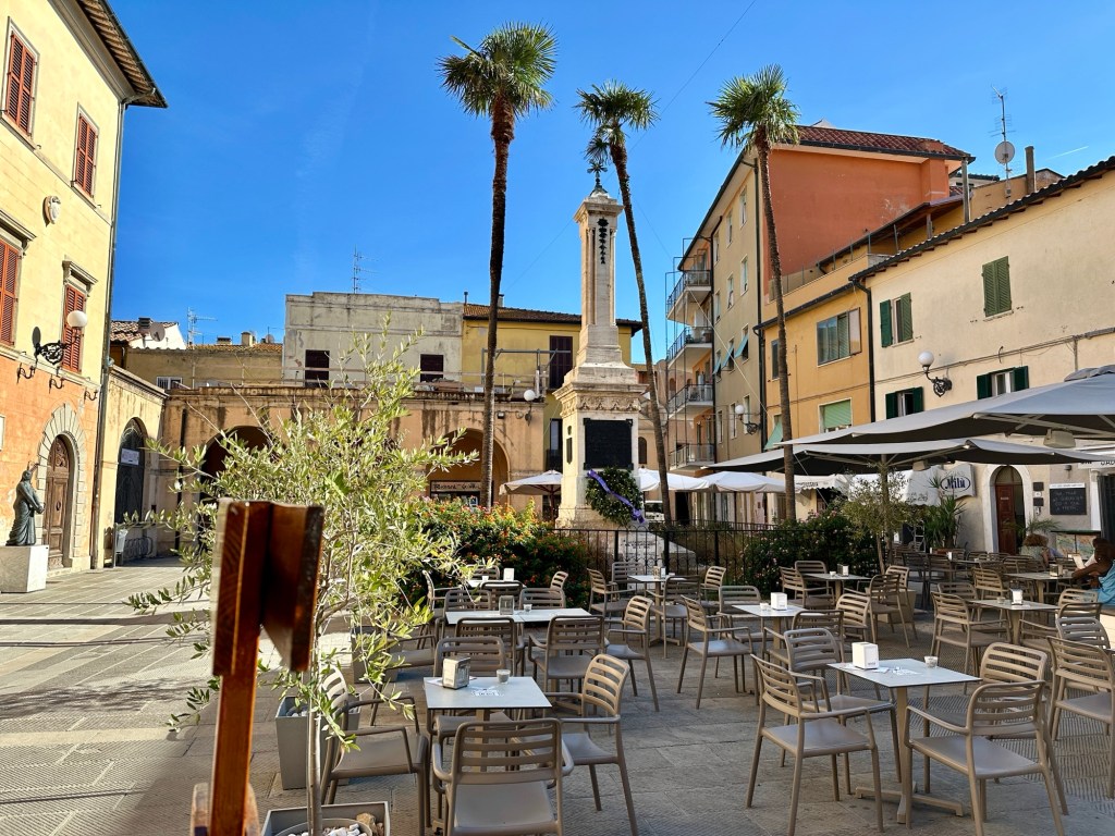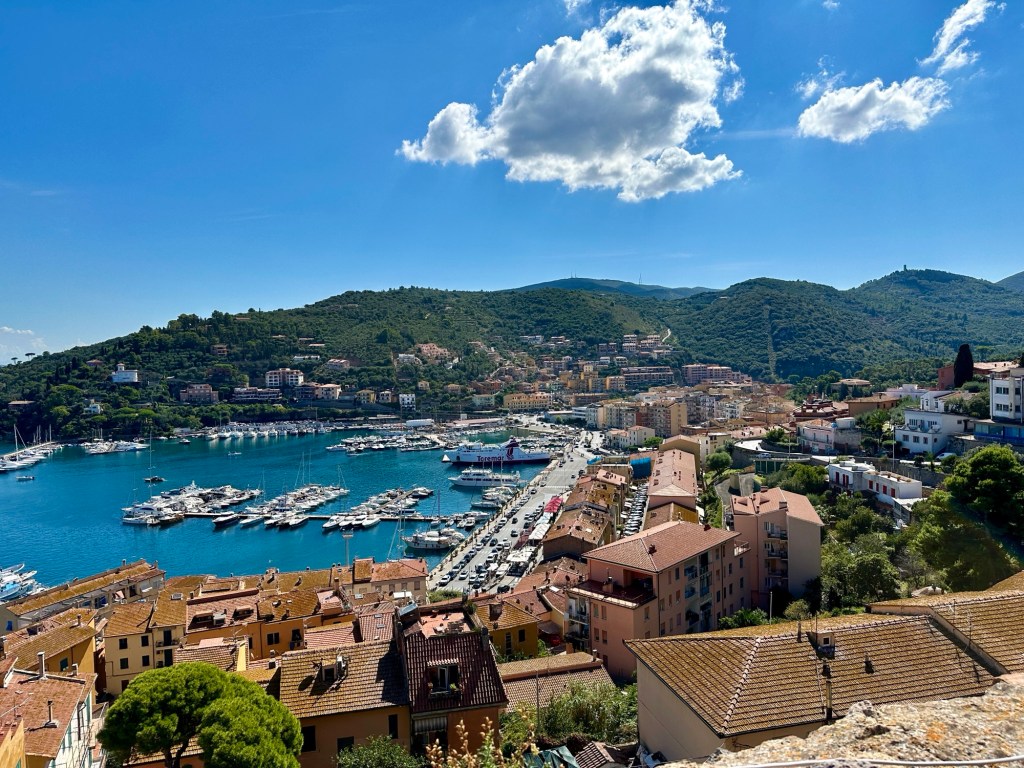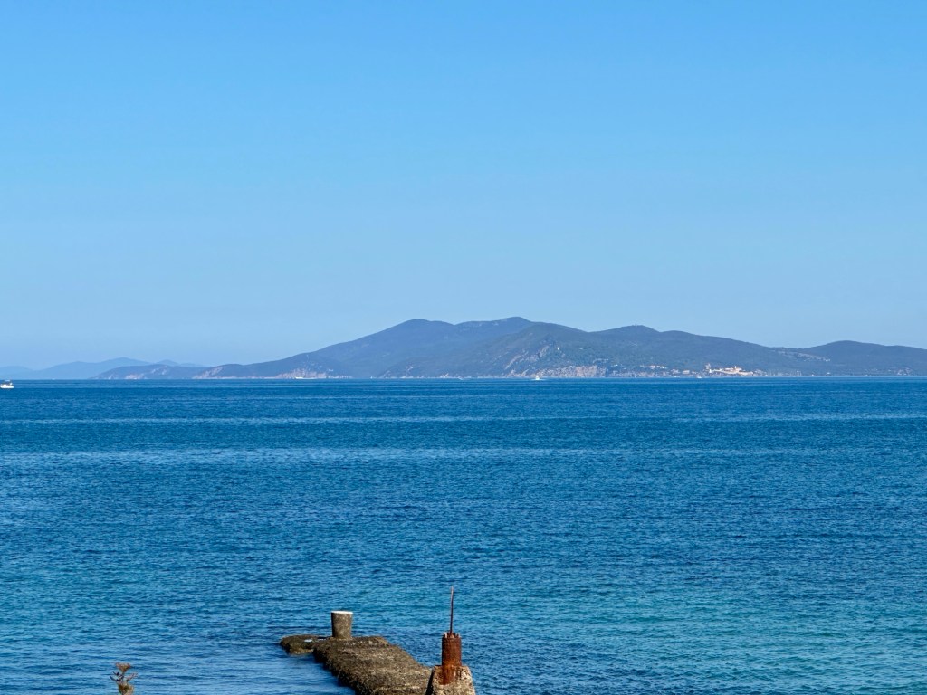Schon die Fahrt gewährte wunderschöne Ausblicke auf die Küste und das Meer. Auch der Ort selbst war, wie fast alle italienischen Orten, mit engen Straßen und Gassen, Treppen, die bergauf bergab führten, sowie einer schönen Strandpromenade ausgestattet. Auf Google Maps hatten wir ein Castello ausgemacht, zu dem wir uns über viele Treppenstufen hinauf auf den Weg machten. Für zwei Euro Eintritt durften wir ganz nach oben. Schön ist, dass in Italien auch Hunde mit dürfen. So hatten wir einen ausgezeichneten Blick über die Bucht, bis weit zur Insel Elba hin.