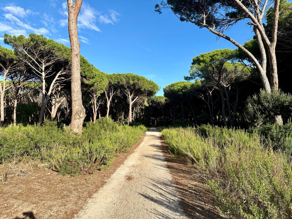 Wir nutzen die schöne Lage, um endlich einmal wieder eine schöne Radtour zu machen, den E-Bikes sei Dank. Diese führte uns zunächst in das Örtchen selber, danach ging es über die andere Landverbindung, auf der es auch keine Straße gibt, wieder zurück. Dort ging es allerdings durch einen wunderschönen Pinienwald, auf der einen Seite die Lagune und auf der anderen Seite das Meer.