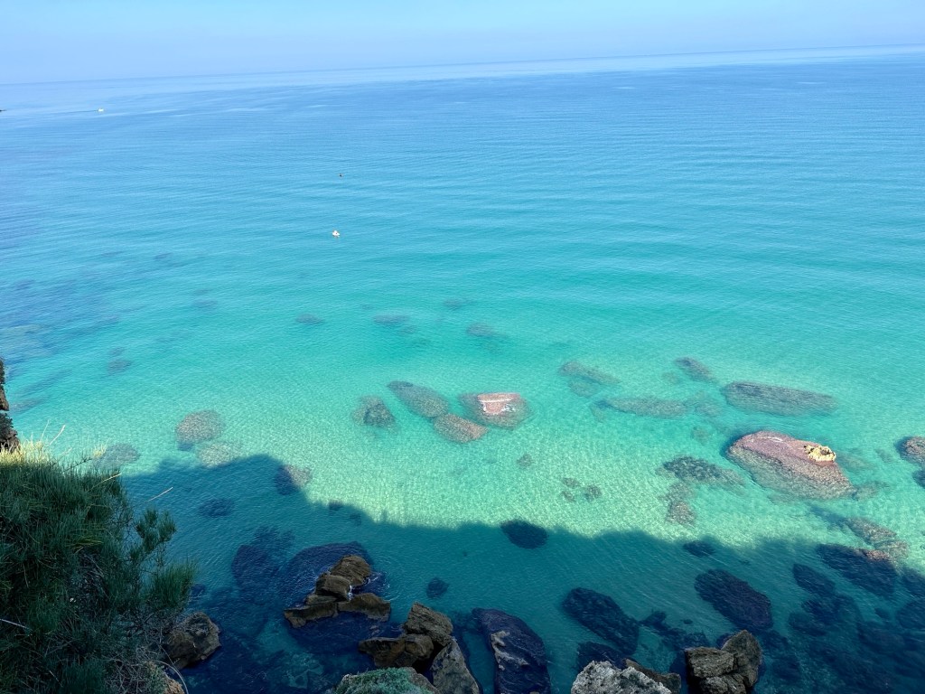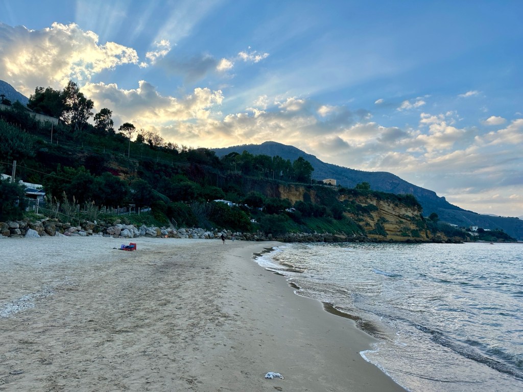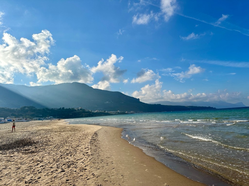 Dieser liegt, einmal wieder, über dem Meer, aber nicht so hoch wie zum Beispiel in Sorrent. Es sind nur wenige Treppenstufen bis zu dem mehrere Kilometer langen Sandstrand mit ganz feinem Sand und einem sehr flachen Meer.