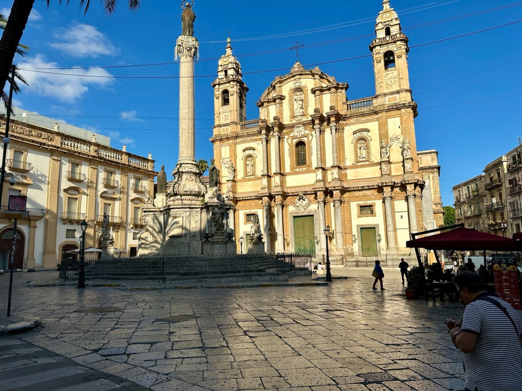 Und es gibt die eigentliche Altstadt Palermos, die von der normannischen, aber auch arabischen Besetzung Siziliens zeugt, und die heute saniert und wieder zum Leben erweckt wird. Hier finden sich Märkte, kleine Geschäfte und vor allem Kunsthandwerk. Und wie immer viele Touristen, denn es lagen wieder Kreuzfahrtschiffe im Hafen. Und dazwischen gibt es bombastische Palazzos, unendlich viele Kirchen und große Plätze.