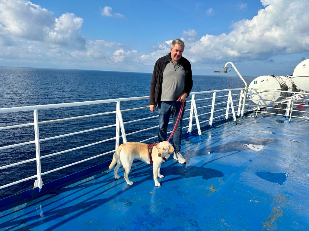 Aber später klarte es auf, die Sonne kam raus, aber es pfiff ein heftiger, kalter Wind, so dass wir die meiste Zeit unter Deck blieben. Es gab eine große Bar zum Aufhalten, zu der Andra eigentlich keinen Zutritt hatte, aber … die Italiener nehmen es zum Glück nicht so genau.