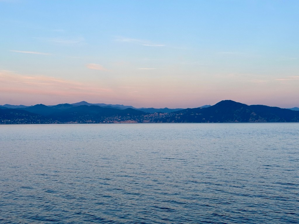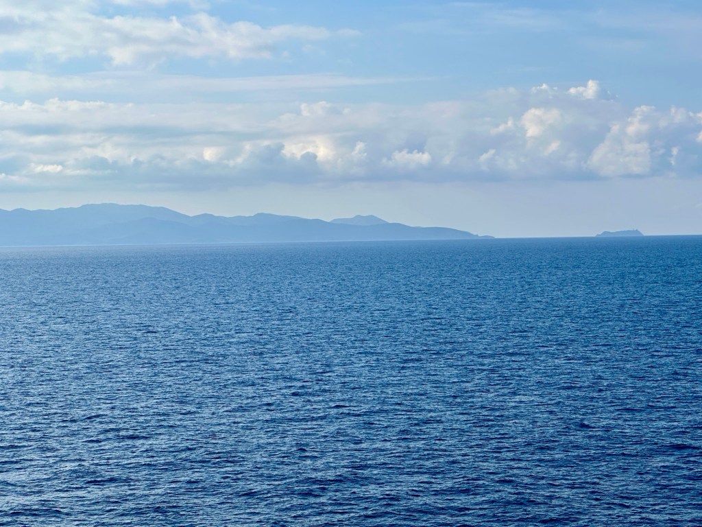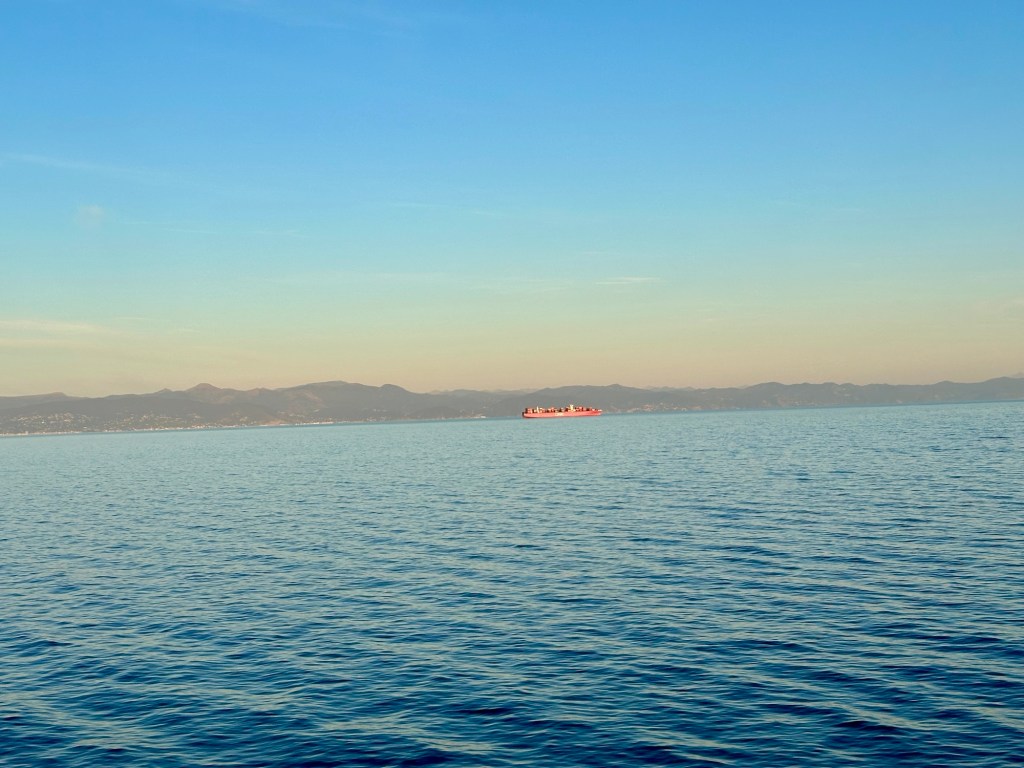Bei guter Sicht sahen wir immer wieder einmal Land, vor allem die Inseln Elba und Korsika, später auch die ligurische Küste.