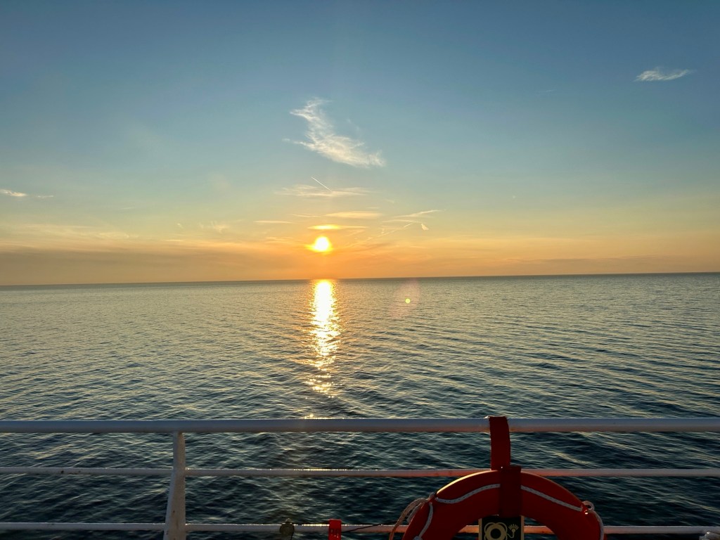 Die Seereise bescherte uns tatsächlich noch einen schönen, letzten Sonnenuntergang, womit wir nicht gerechnet hatten.