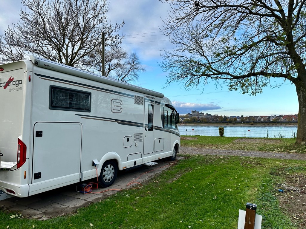 Das einzige Manko ist, dass der Platz in Köln-Rodenkirchen und damit nicht unbedingt zentrumsnah liegt. Aber mit den Fahrrädern sind die 8 km in die Stadt leicht zu bewältigen – und seit Worms und dem Besuch bei ALDI haben wir jetzt auch Handschuhe.