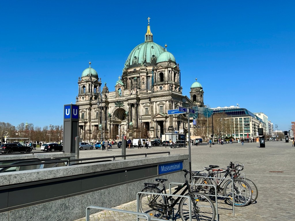 Danach fuhren wir wieder mit den Rädern nach Mitte und besuchten im Humboldt-Forum die Ausstellung Berlin global. Darin geht es um die Geschichte Berlins, aber eben nicht chronologisch, sondern nach Themen gegliedert und immer den Bezug zum Weltgeschehen im Blick.