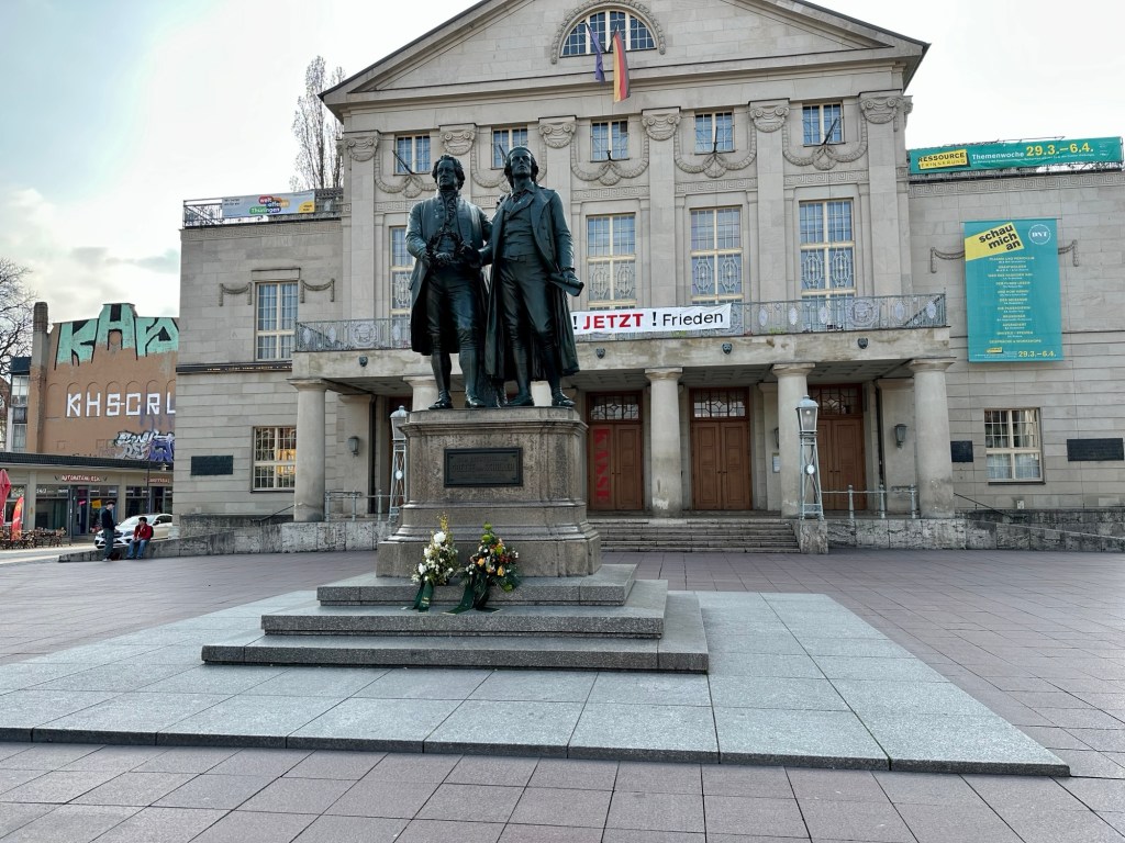 Wohl am Bekanntesten ist das Denkmal von Schiller und Goethe, schließlich ist Goethe in Weimar geboren und hat hier auch gelebt, ebenso wie Schiller, der aber in Marbach (Baden-Württemberg) geboren ist.