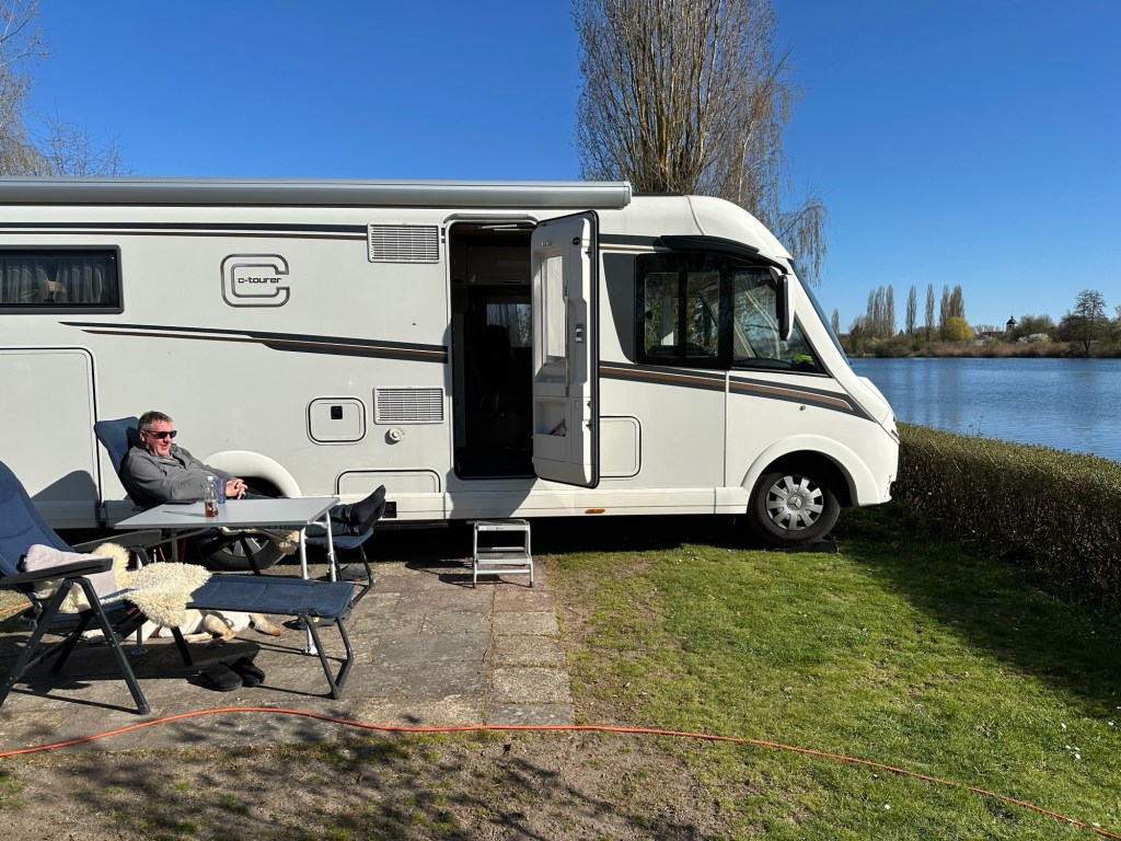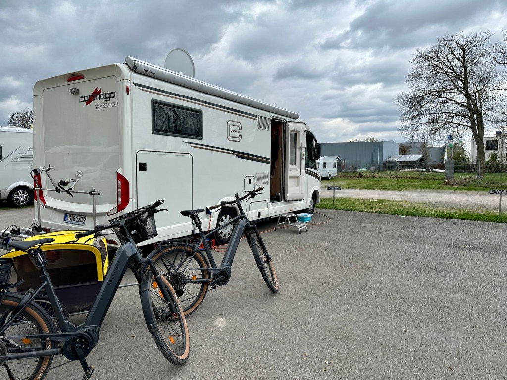 Bei ordentlichem Wind und nicht ganz so schönem Wetter ging es am nächsten Morgen weiter Richtung Worms. In dem kleinen Örtchen Eich im Rheintal stand das neue Wohnmobil von Dieters Cousine und deren Partner, das es zu besichtigen und feiern galt.