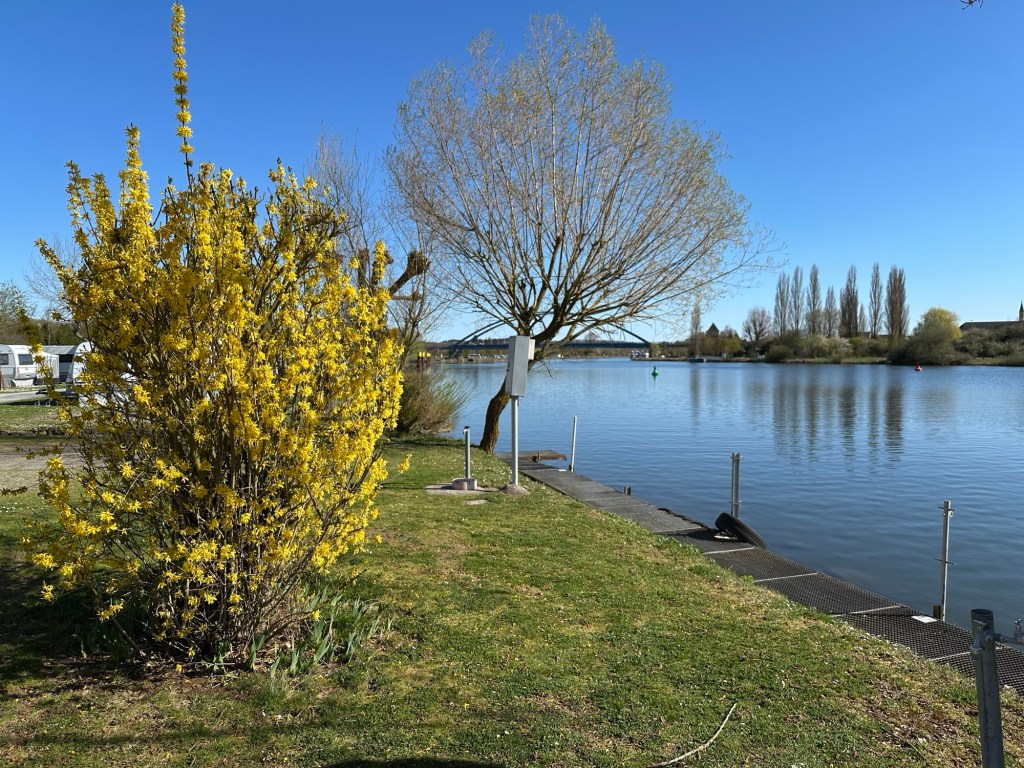 Der Campingplatz, den wir uns ausgesucht haben (Campingplatz Ankergrund) ist ein Traum! Wir stehen direkt am Main, ein Schritt weiter und wir würden im Wasser landen. Das an sich ist ja schon super, aber der Campingplatz verfügt über ein komplett neues Sanitärgebäude mit allem, was das Camperherz braucht. Es gibt jeden Morgen frische Brötchen und vor allem auch eine Zeitung.