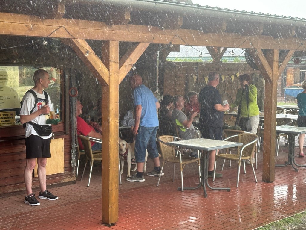 Nach einem Ruhetag mit Paddeln und Schwimmen, immerhin hatte sich das Wetter wieder zum Guten gewendet, besuchten wir Abends noch einen schönen Biergarten an der Oder in Kuhbrücke.