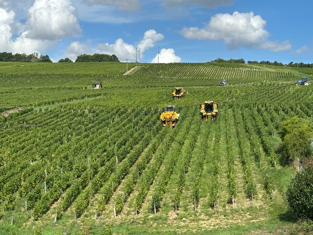 Hier ist die Weinlese in vollem Gang und zumindest am Berg werden Maschinen eingesetzt.