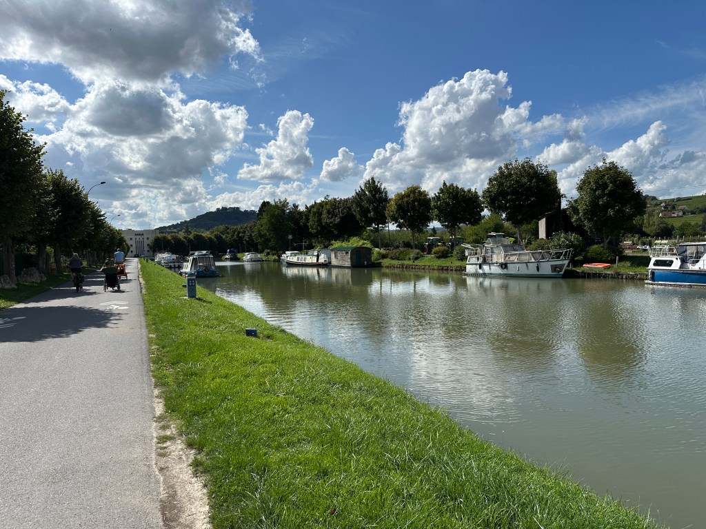 Bei einer Fahrradtour am nächsten Tag ging es auf einem wunderbaren Radweg entlang eines Seitenkanals zur Loire in die nächste Stadt, nach Cosne-Cours-sur-Loire. Über eine schicke Brücke gelangten wir die Stadt, die aber eher nichtssagend war. Die Tour war jedenfalls schön.