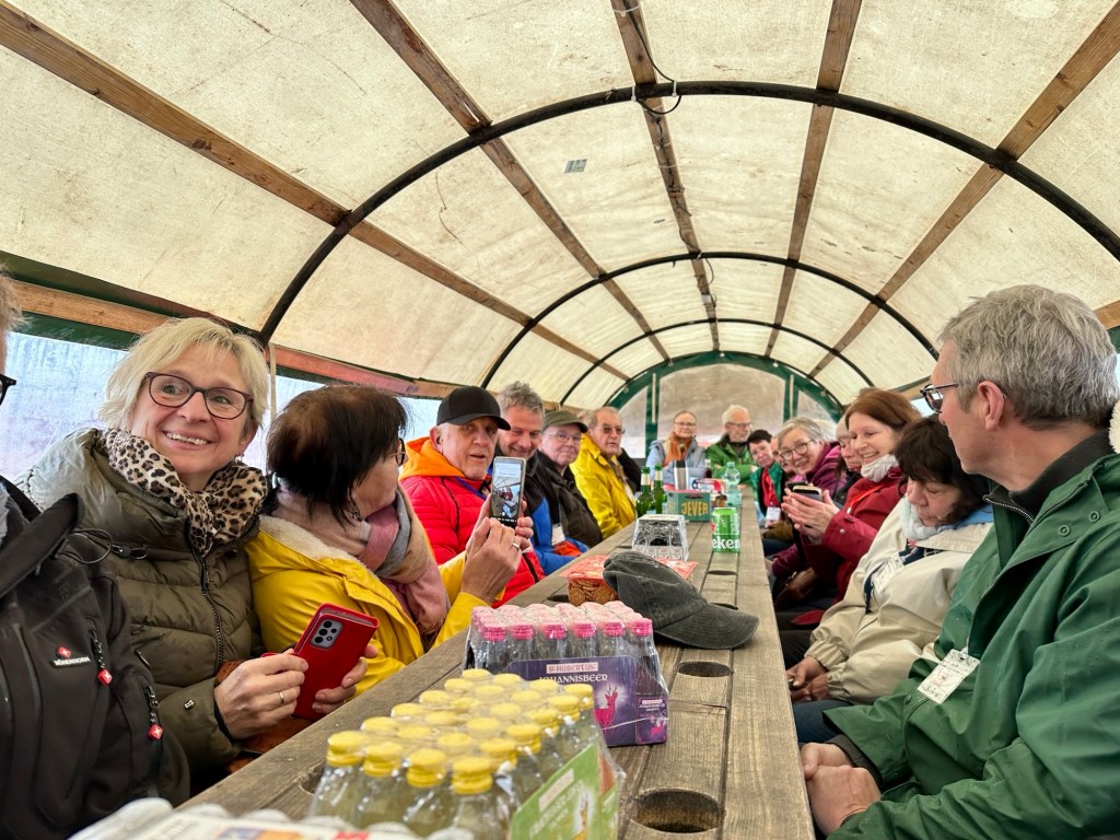 Leider meinte es der Wettergott nicht wirklich gut mit uns, denn das Wochenende war mehr oder weniger verregnet, was der guten Stimmung, aber keinen Abbruch tat. Und da wir am Sonnabend den See im Planwagen umrundeten, waren wir zumindest vor dem Regen geschützt, kalt war es trotzdem.