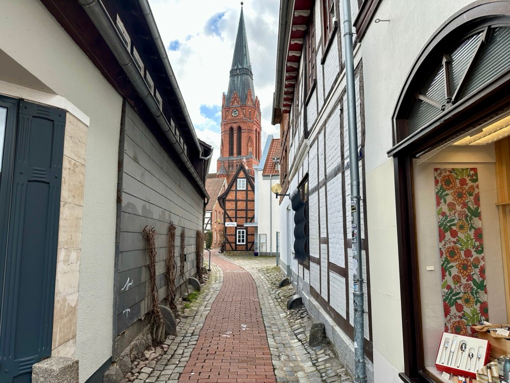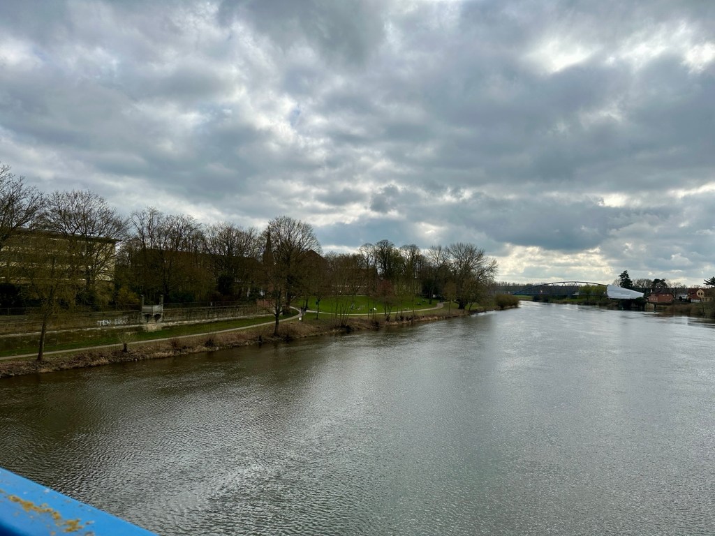 Nachdem wir angekommen waren, machten wir uns direkt auf den Weg in die schöne Nienburger Altstadt, die jedoch menschenleer war. Nicht nur die Geschäfte, sondern auch einige Cafés, Restaurants und Imbissbuden waren geschlossen. Deutsche Städte im Herbst und im Frühjahr scheinen sich nicht mit Sonntagen zu vertragen. Zum Glück wies uns Google den Weg zu einem schönen, direkt an der Weser gelegenen Café. Quasi direkt daneben liegt ein Restaurant, dass wir heute Abend noch aufsuchen wollen.